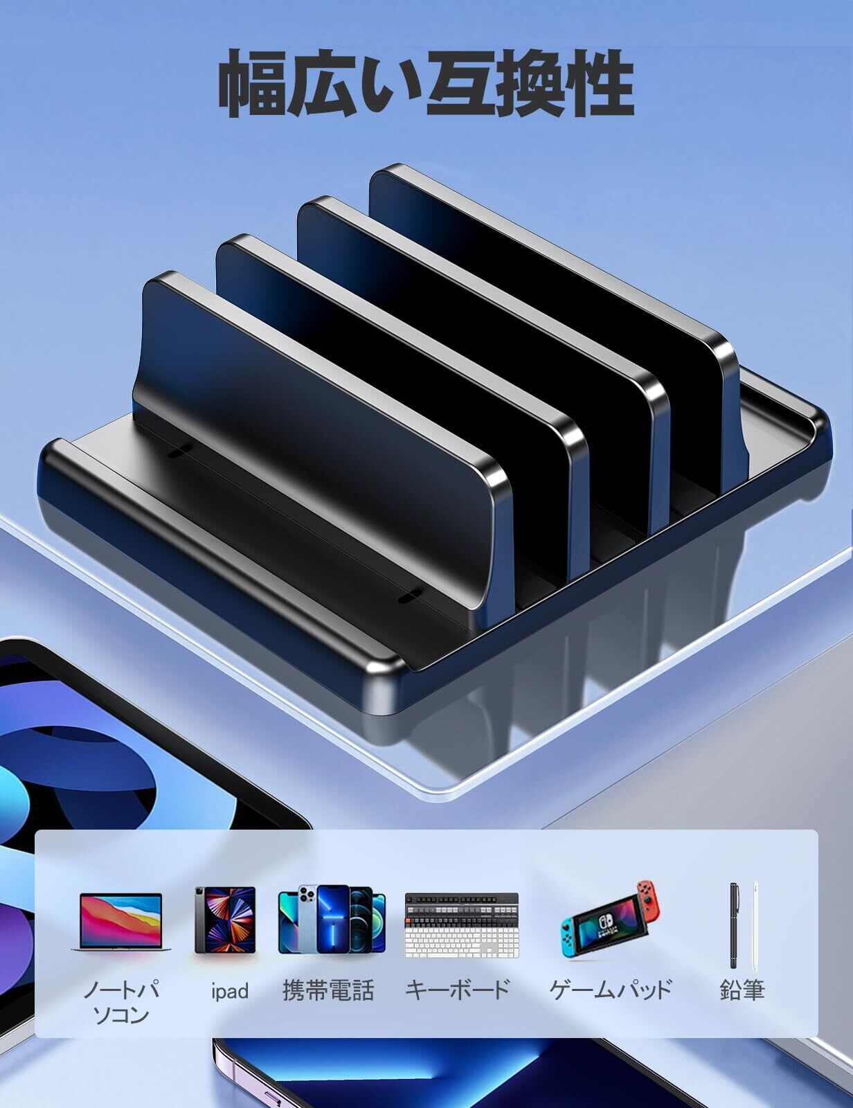 【数量限り】VAYDEERノートパソコンスタンド 縦置きノートpc スタンド 3台収納 ホルダー幅調整可能 ABS樹脂製 for タブレット/ipad/Surface/MacBook Pro Air 縦置き用 -ブラック