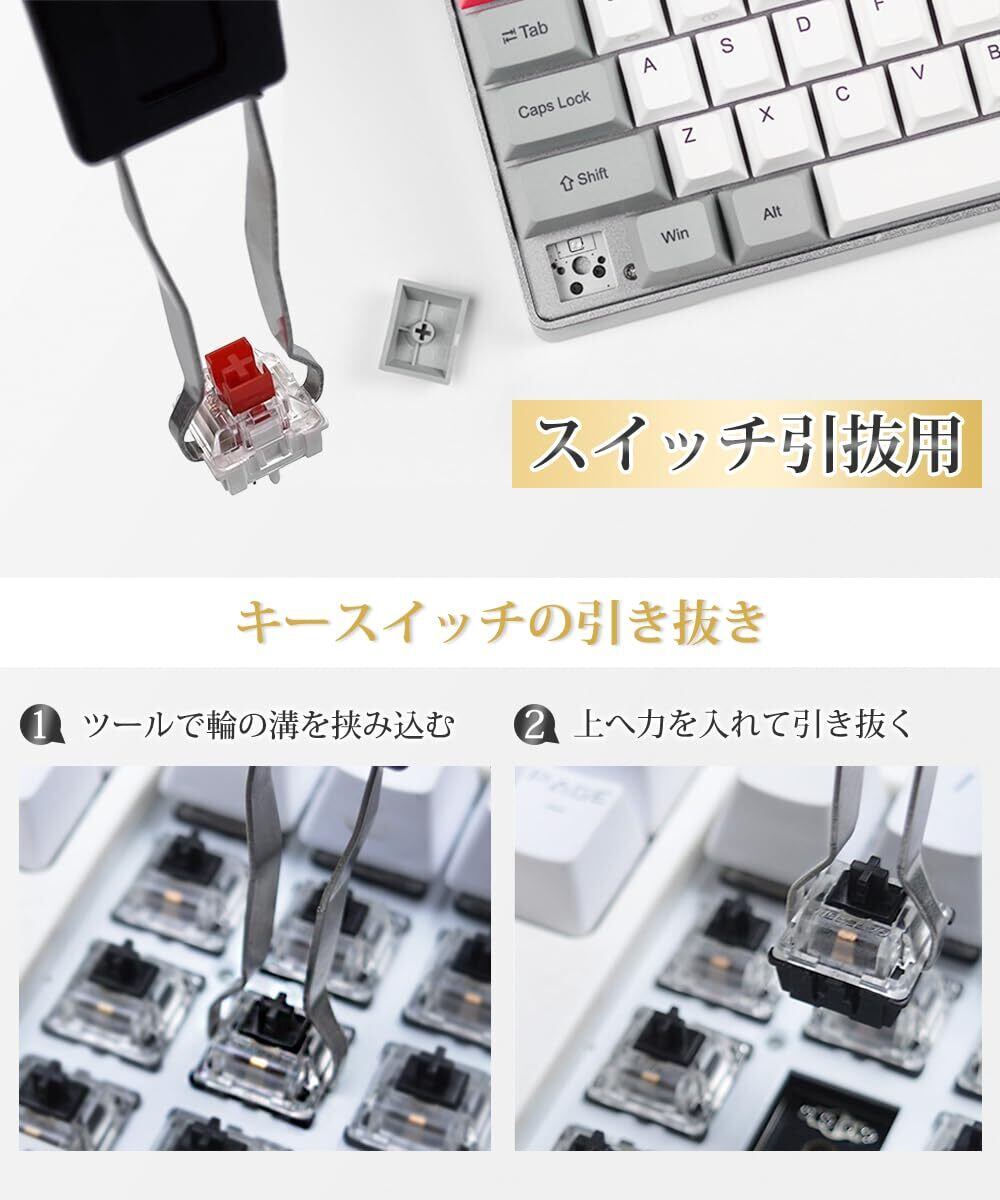 メカニカルキーボード 2in1 両用 キートップ引抜工具 キーキャップ&キースイッチ キートップ 引き抜き工具 キーボードメンテナンス用工具 引き抜けるキー