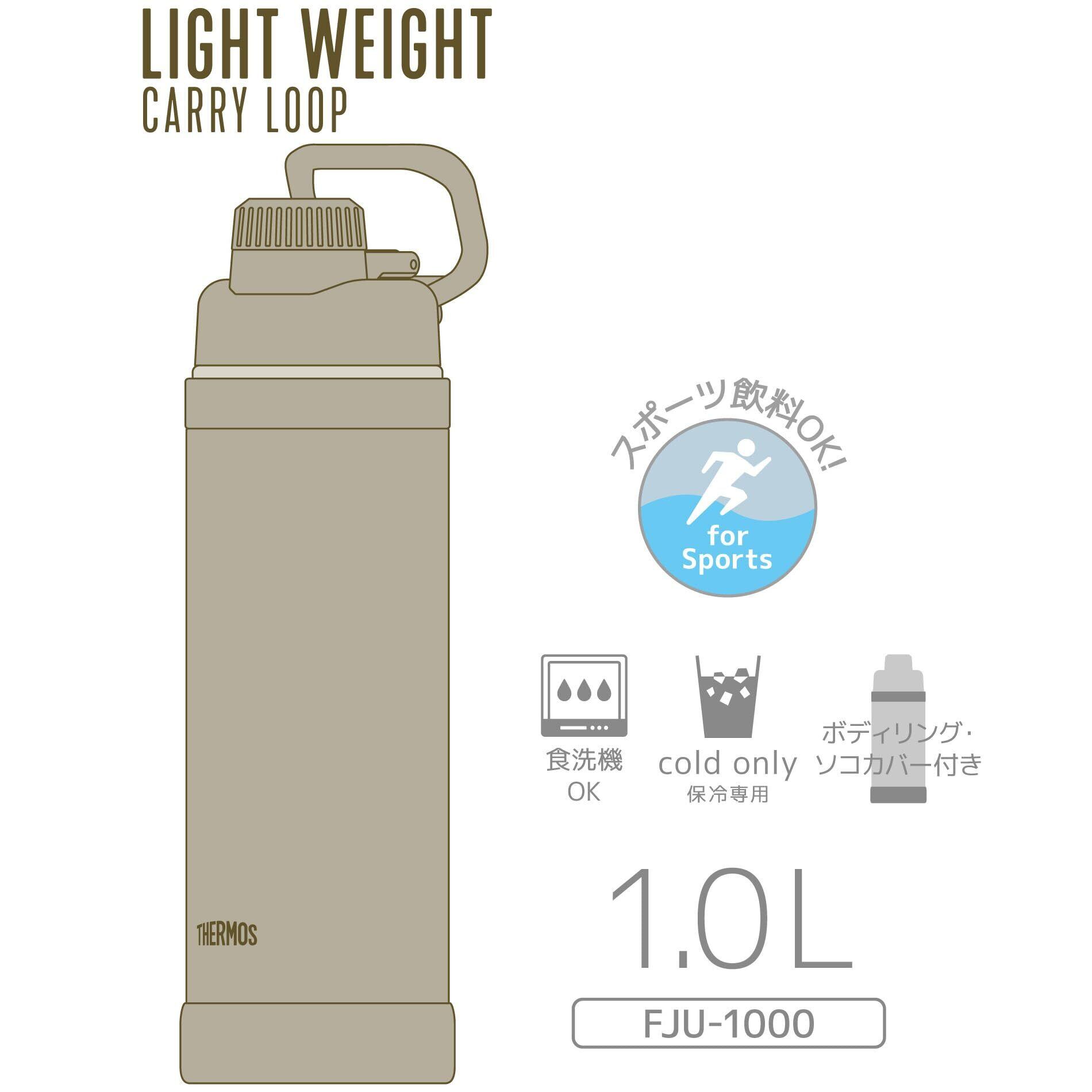 【ハンドル付き・食洗機対応】サーモス 水筒 真空断熱スポーツボトル 1L サンド 持ち運びに便利なキャリーループ 直飲み 飲み口が外せて洗いやすい 保冷専用 FJU-1000 SND