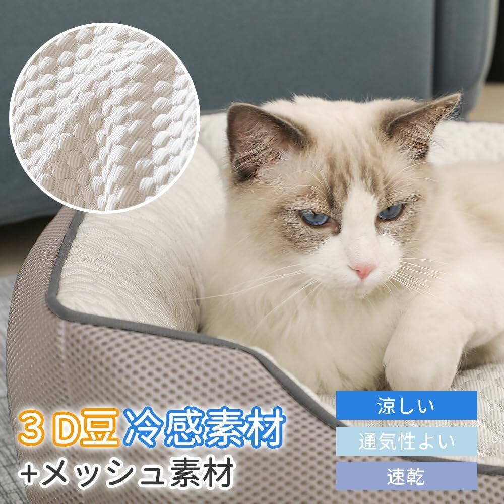 【新着特価】Peto-Raifu 猫 ベッド 犬 ベッド ひんやり ペットベッド ペットクッション 夏用 ペットソファー ふわふわ 3D豆 接触冷感 ペットマット 超小型犬用 猫用 洗える 無地 ブルー 外径約60x50x18cm