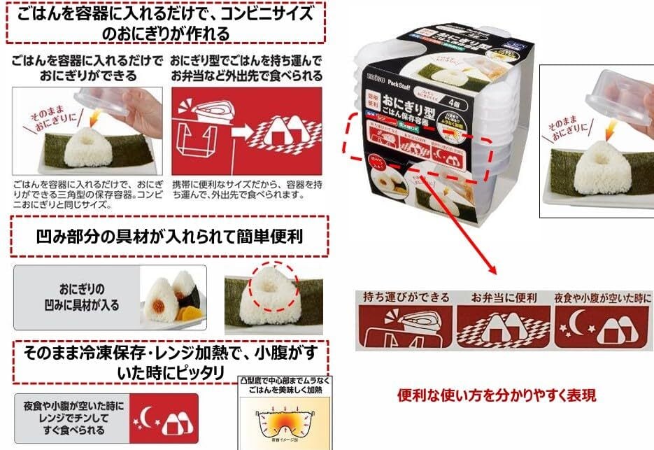 【数量限り】エビス(Ebisu) おにぎり型 ごはん 保存容器 4個組 コンビニサイズ おにぎり 冷凍 レンジ加熱 食洗器OK 日本製 PG-3150