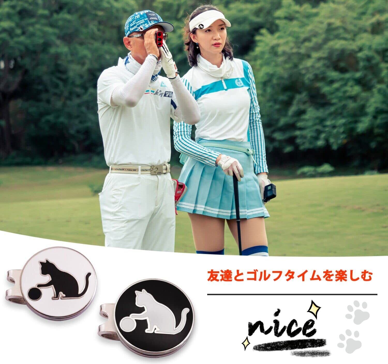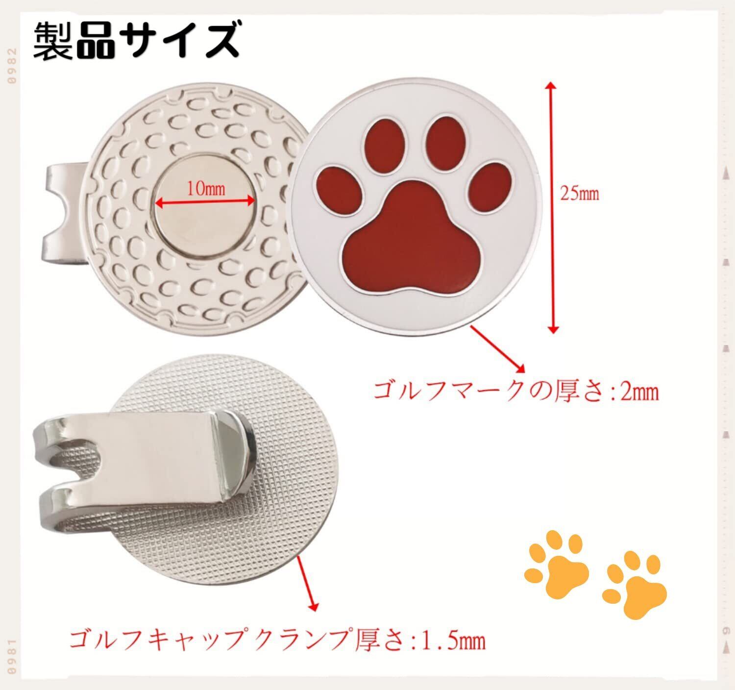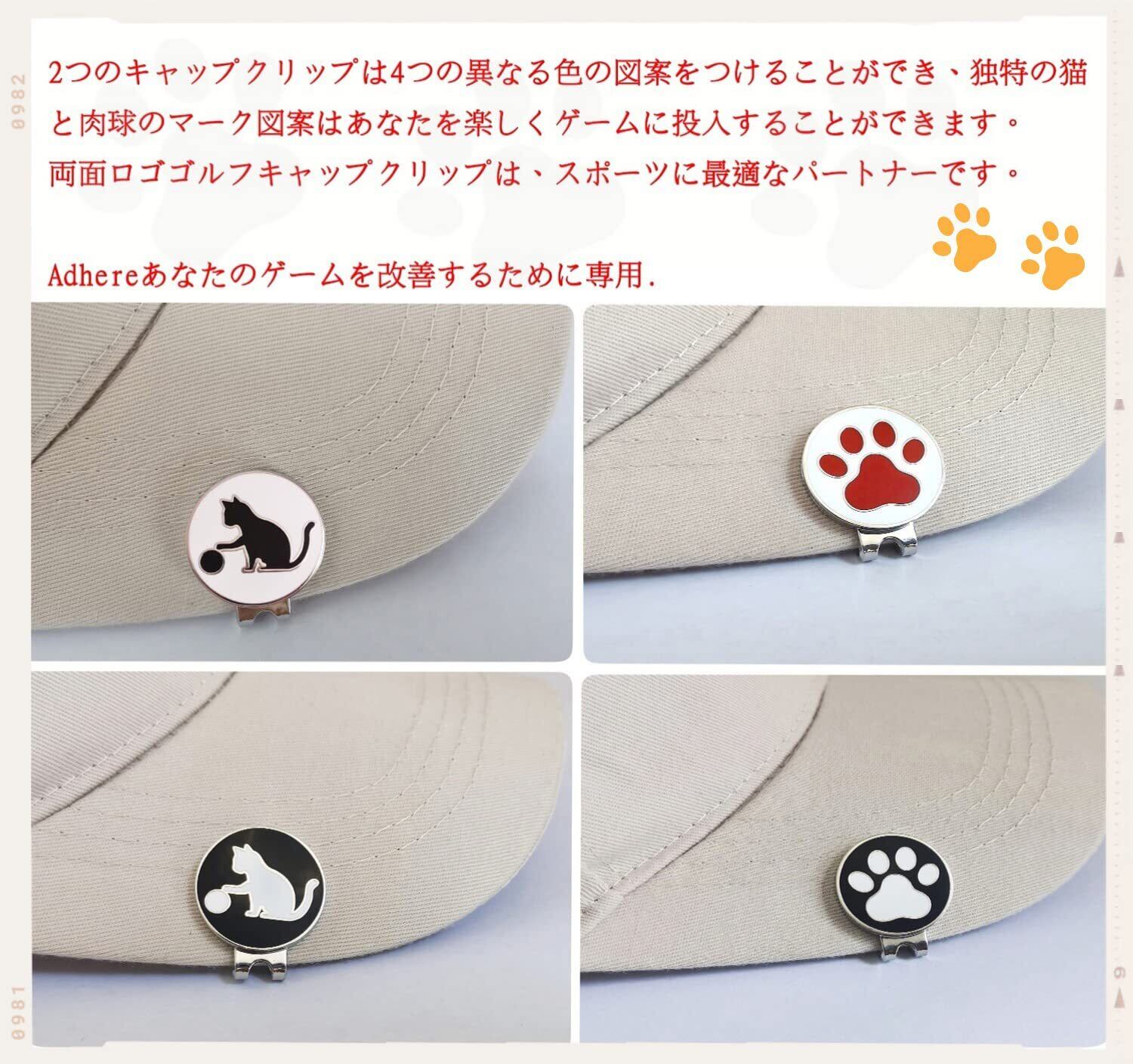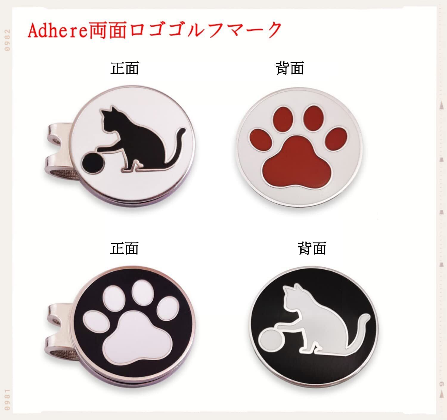 Adhere ゴルフ マーカー ゴルフキャップクリップ 磁気両面ロゴボールマーク かわいい猫と 肉球 デザイー 2個入り