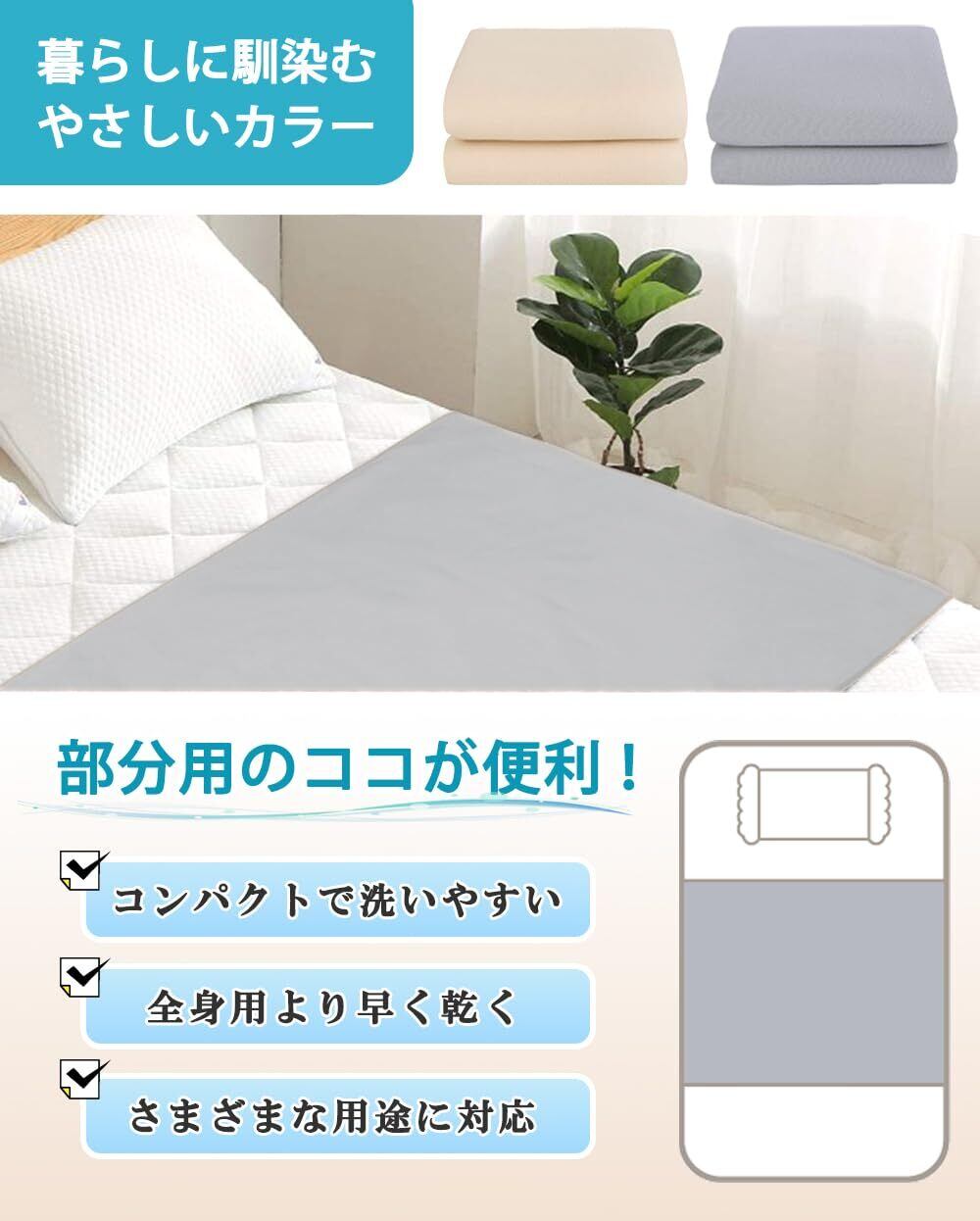 防水シーツ 介護 速吸水・速乾 ニット生地 部分用 100x140cm (2枚入り) 洗濯・乾燥機対応 JIS規格耐水 グレー
