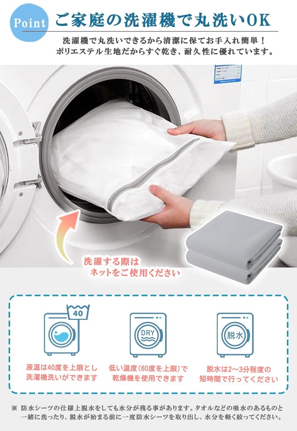 「製品詳細」<サイズ >:2枚入り、<サイズ >:部分使い用 - 100x140cm (洗濯可能・乾燥機使用可能)、<素材・材質>:表地 - 100% ポリエステル :裏地 - TPU防水層、<入数>:2枚組、<カラー>:グレー、「洗濯機で丸洗いOK※洗濯ネットをご使用ください」。「品質表示」日本語洗濯表示タグ(洗濯機(洗濯ネット使用)