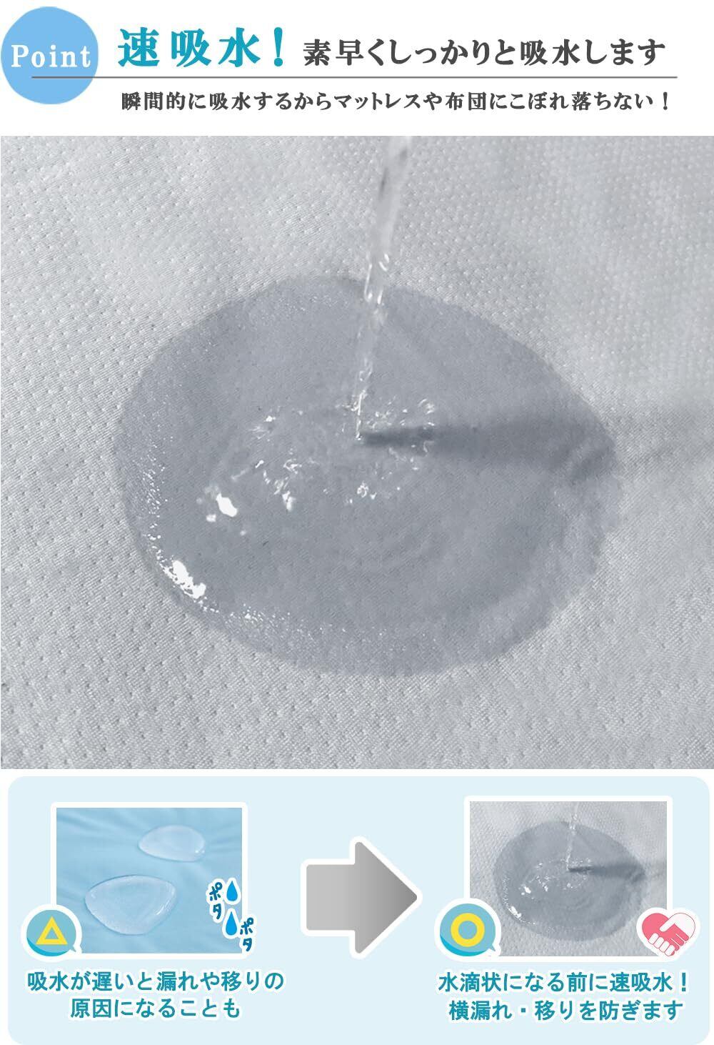 「吸水性・速乾性」 吸水性が良いニット生地の防水シーツ。 汗の吸水率を良くし、嫌なジメジメ感を解消し、毎日の睡眠を心地良くします。