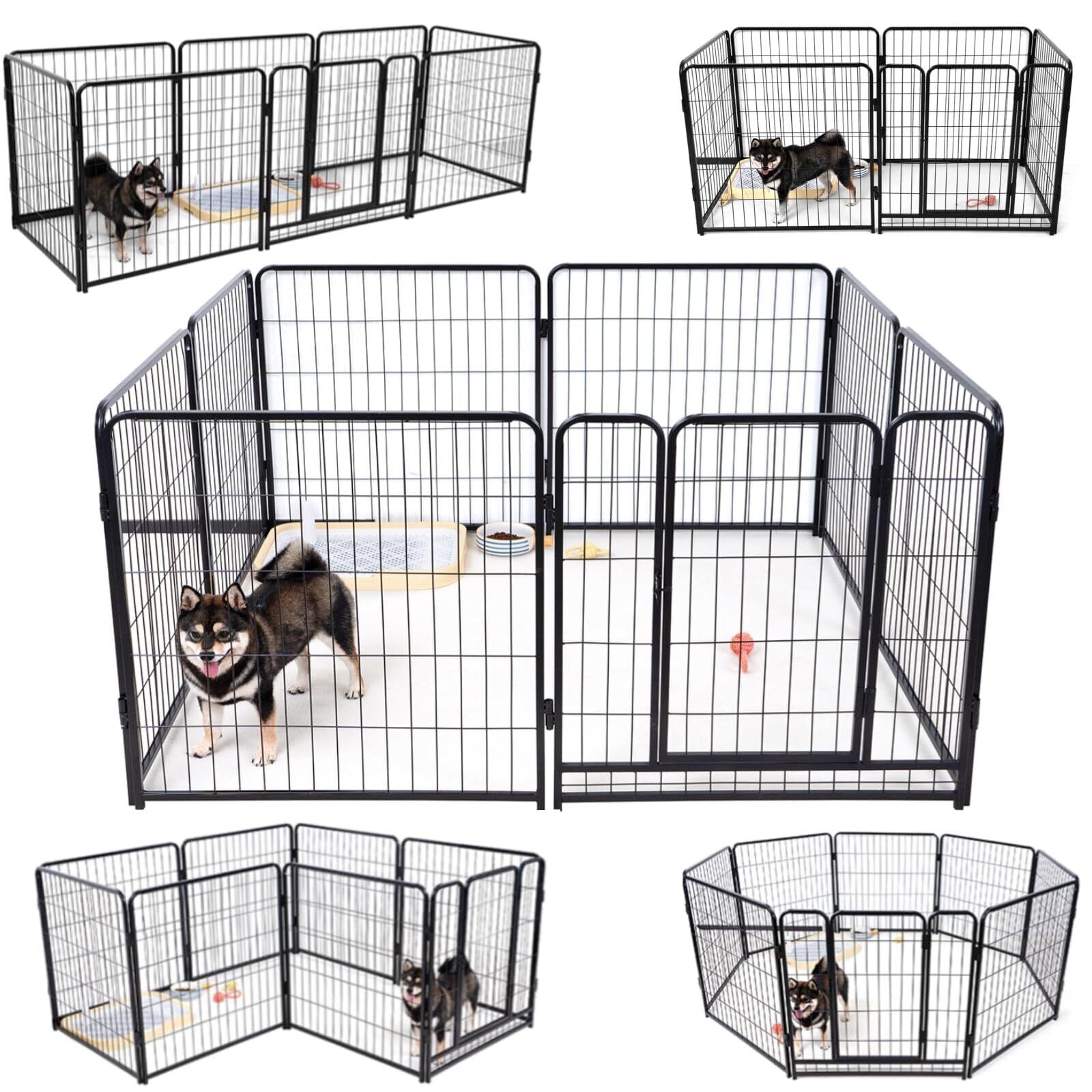 KIRATAKU 犬 ゲージ 大型犬 サークル 60/80/98CM ペットサークル サークル ペット ケージ 犬用サークル ペットフェンス 犬サークル 中型犬 スチール製 コンパクト 組み立て簡単 室内室外兼用 (ブラック 高さ80cm 6枚)