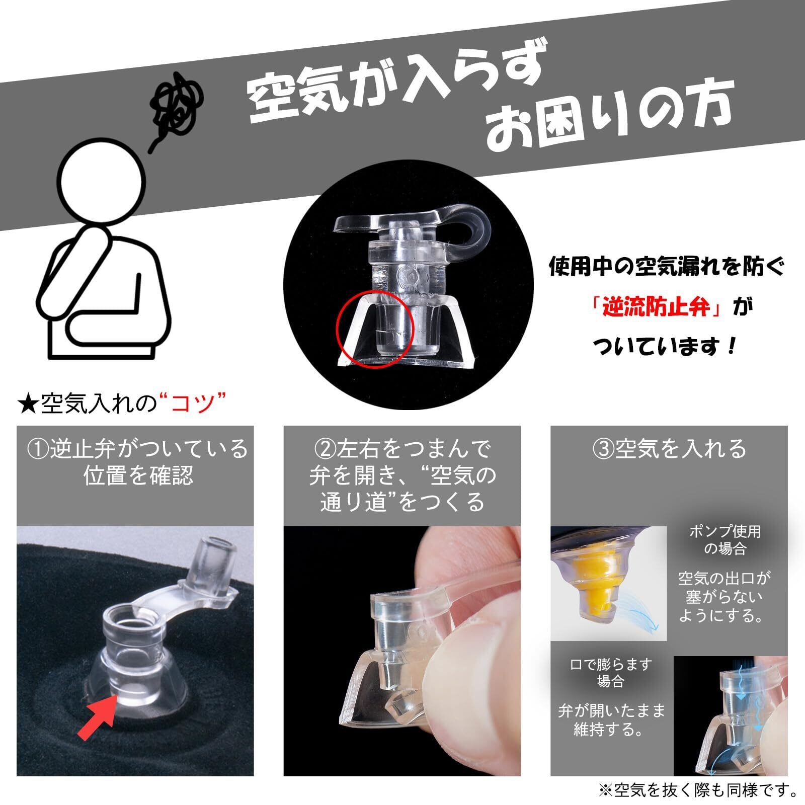 空気を入れるコツ:本品ろ広げて「空気栓」の根本を指でつまみながら空気を吹き込んでください