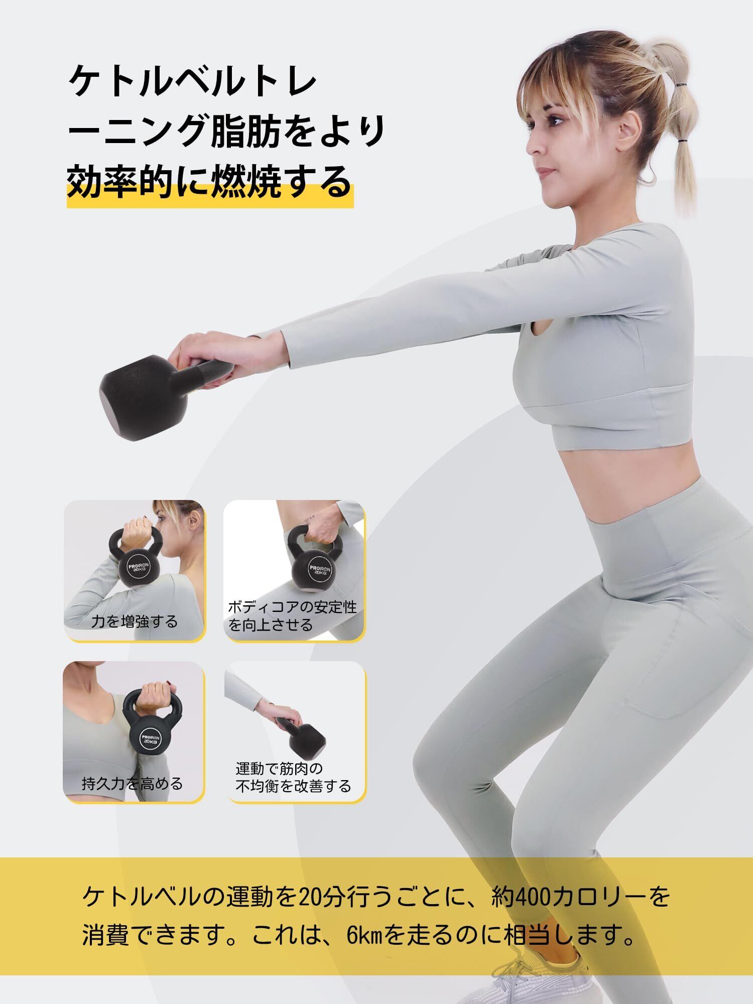 PROIRON ケトルベル ネオプレン kettlebell 一体型鋳鉄製 壶铃 鉄アレイ ケトル 4kg 6kg 8kg 10kg 12kg 14kg 16kg 20kg 重り ケトル