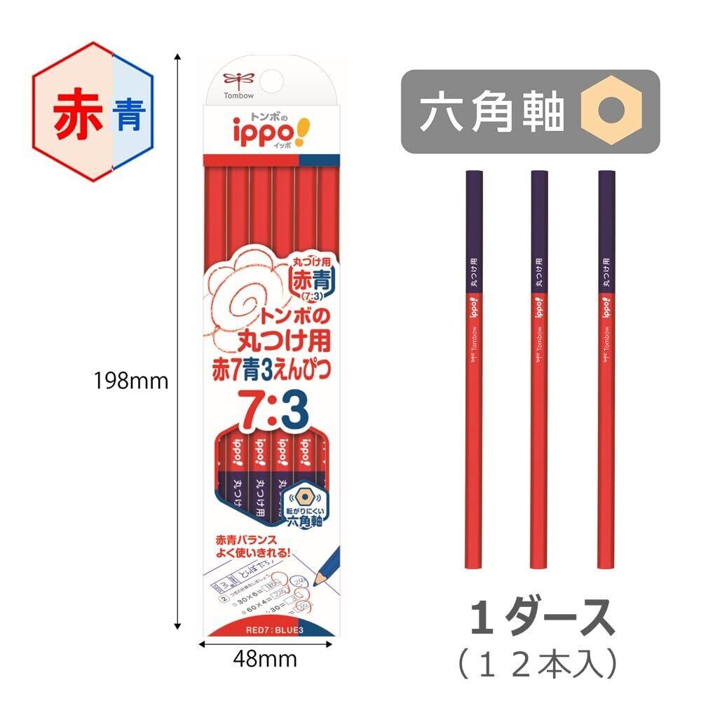 トンボ鉛筆 赤青鉛筆 (7:3) 12本 丸つけ用 六角 ippo! 1ダース 12本 CV-KIVP7/3