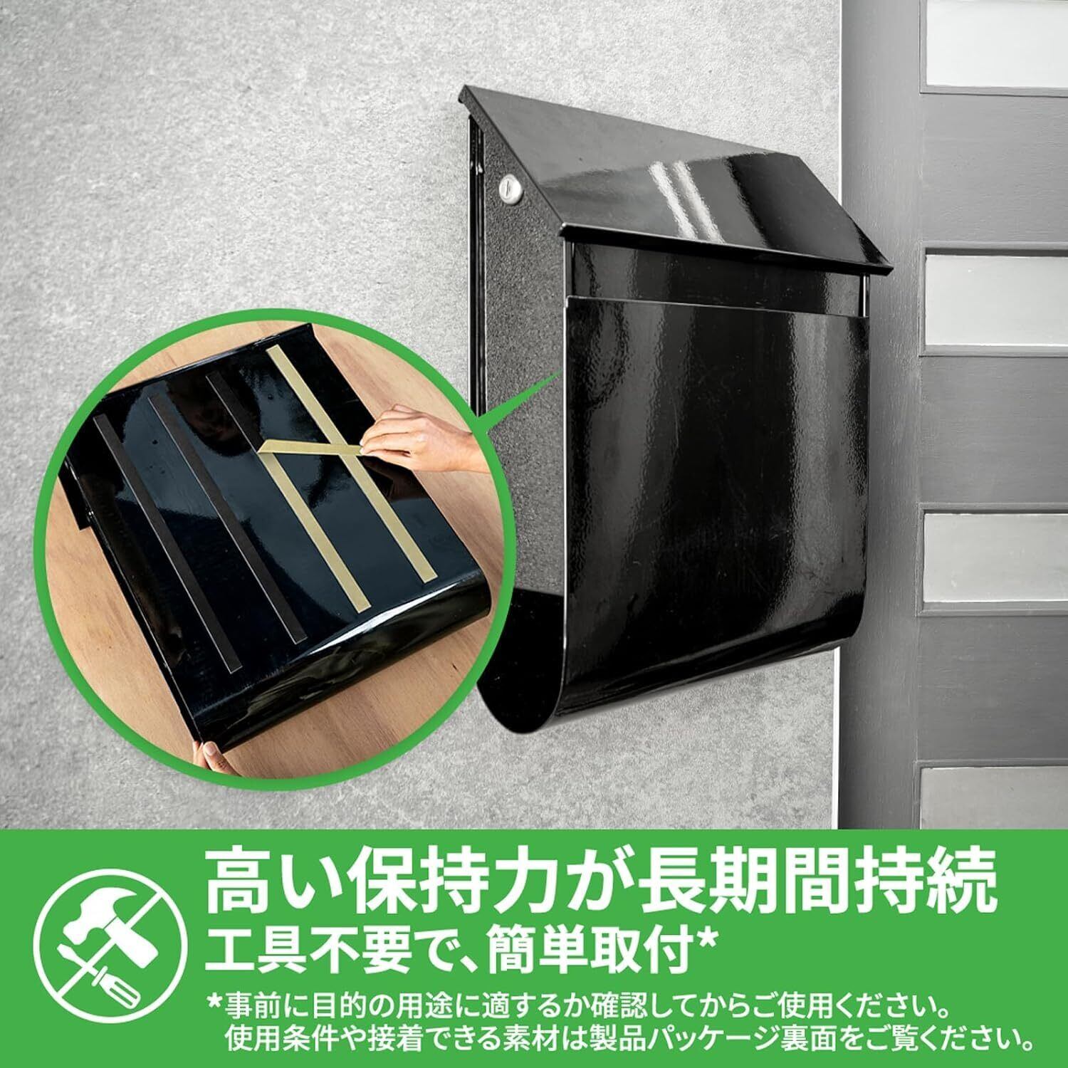 【工具いらずで、パパッと取り付けられる! 】壁に穴をあける必要がないので、工具を使わずに手軽に取り付けられます。両面テープを貼る前に、貼付け面をきれいにし、油分を取り除いて貼り付けるだけ!