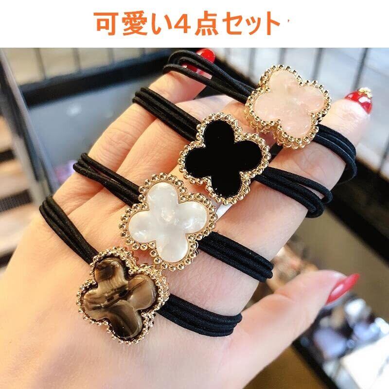【幸せの四葉のクローバーのかわいいヘアゴム4点セット】 幸せの象徴である四葉のクローバーをかたどった、韓国発の可愛いヘアゴム4個セットが登場しました!クローバーの形はキュートで、ヘアアレンジに取り入れるだけで、韓国女子のようなかわいいスタイルを手軽に楽しめます。