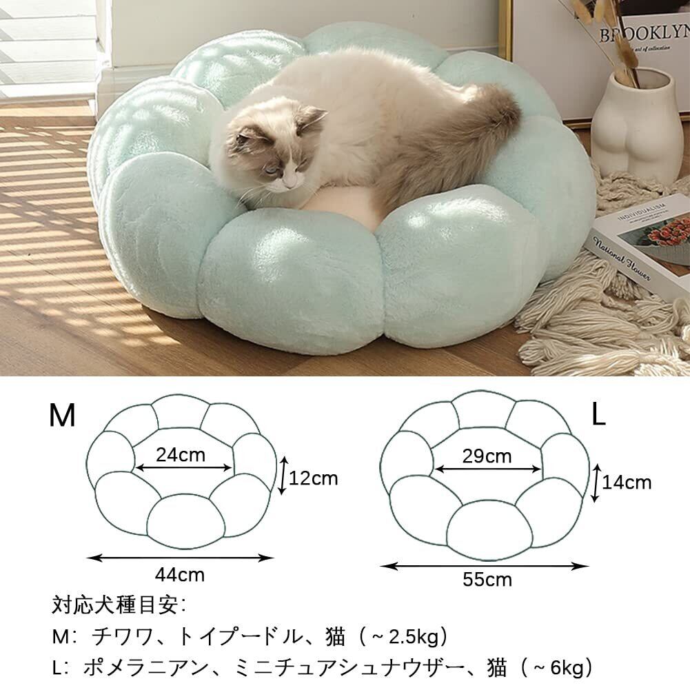 【在庫のみ】Bidason ペット ベッド 犬 クッション 花型 もこもこ ふわふわ 可愛い 暖かい ラウンド ふかふか 寝床 丸洗い可 小型 猫 兼用 滑り止め 防寒 ドーナツ型 ソファ ペット用品 秋 冬