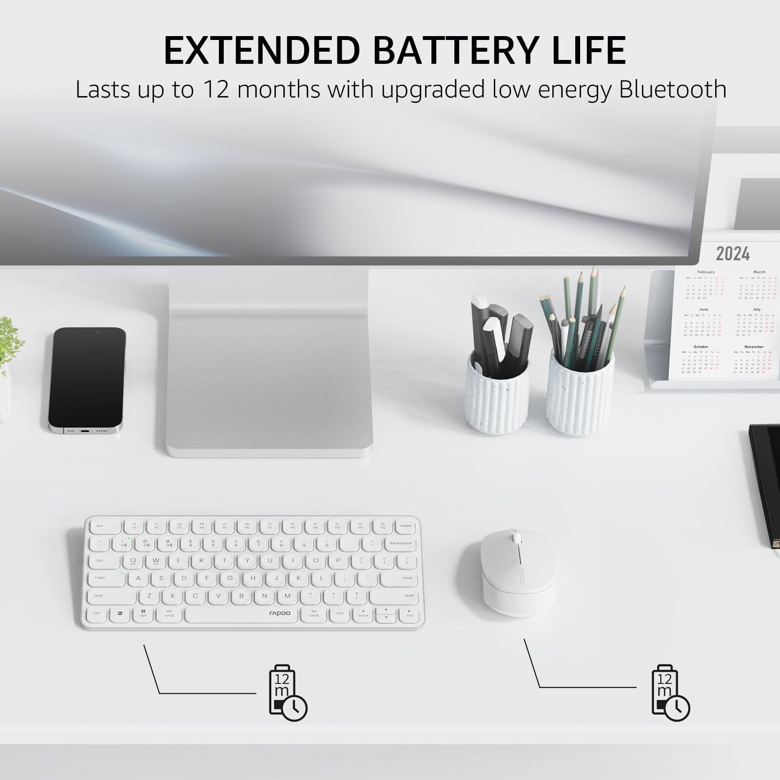 【数量限り】RAPOO 9010M ワイヤレス キーボード マウス セット 無線 Bluetooth 5.0/4.0/2.4GHz 静音クリック 4台デバイス同時接続可能 バッテリー式電源 ホワイト