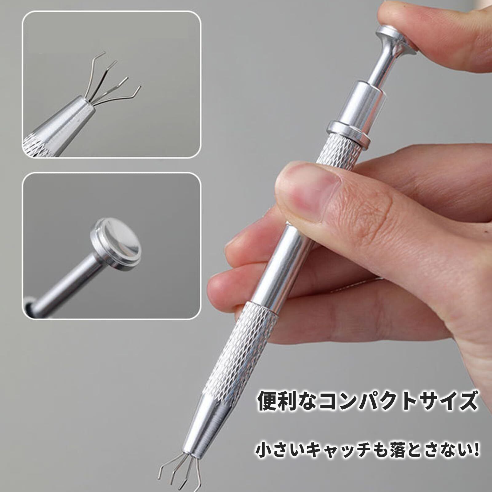 【使い方】先端の先端を押さえるとフック付きのワイヤーが4本伸び、ワイヤーが宝石を挟んでしっかりと宝石をロックします。