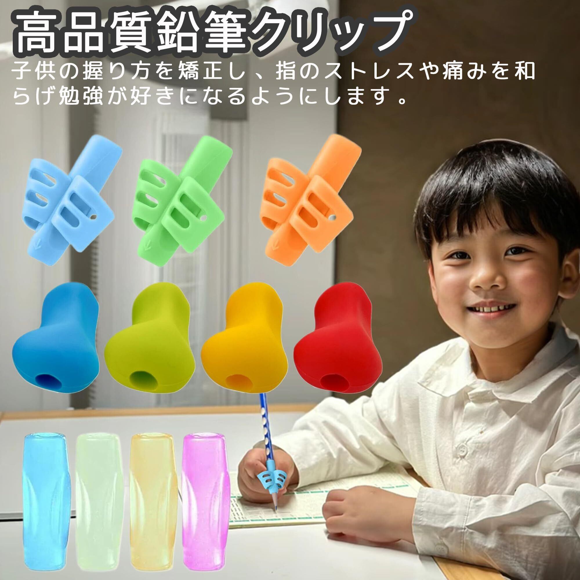これは、子供向けの手書き用鉛筆グリップのセットで、3種類の異なるスタイルの鉛筆 矯正が、合計11個入っています。この鉛筆グリップは、子供専用に設計されており、3つの段階で子供が正しいペンの持ち方を学ぶのを助けます。このプロセスを繰り返すことで、誤ったペンの持ち方を修正し、自然で科学的な書き方を子供に形成させることで、きれいな字を書くのを助けます。プニュグリップは、高品質のシリコン材料で作られており、環境に優しく、無毒で無臭です。鉛筆グリップは、人間工学に基づいた設計でストレスを軽減し、手の疲れを軽減します。鉛筆グリップを使うと、正しい姿勢と持ち方が身につき、手書きの能力も向上します。左利きと右利きの両方に対応しており、子供が正しい持ち方を学ぶのに非常に有用であるだけでなく、大人が書くときも非常に有用です。