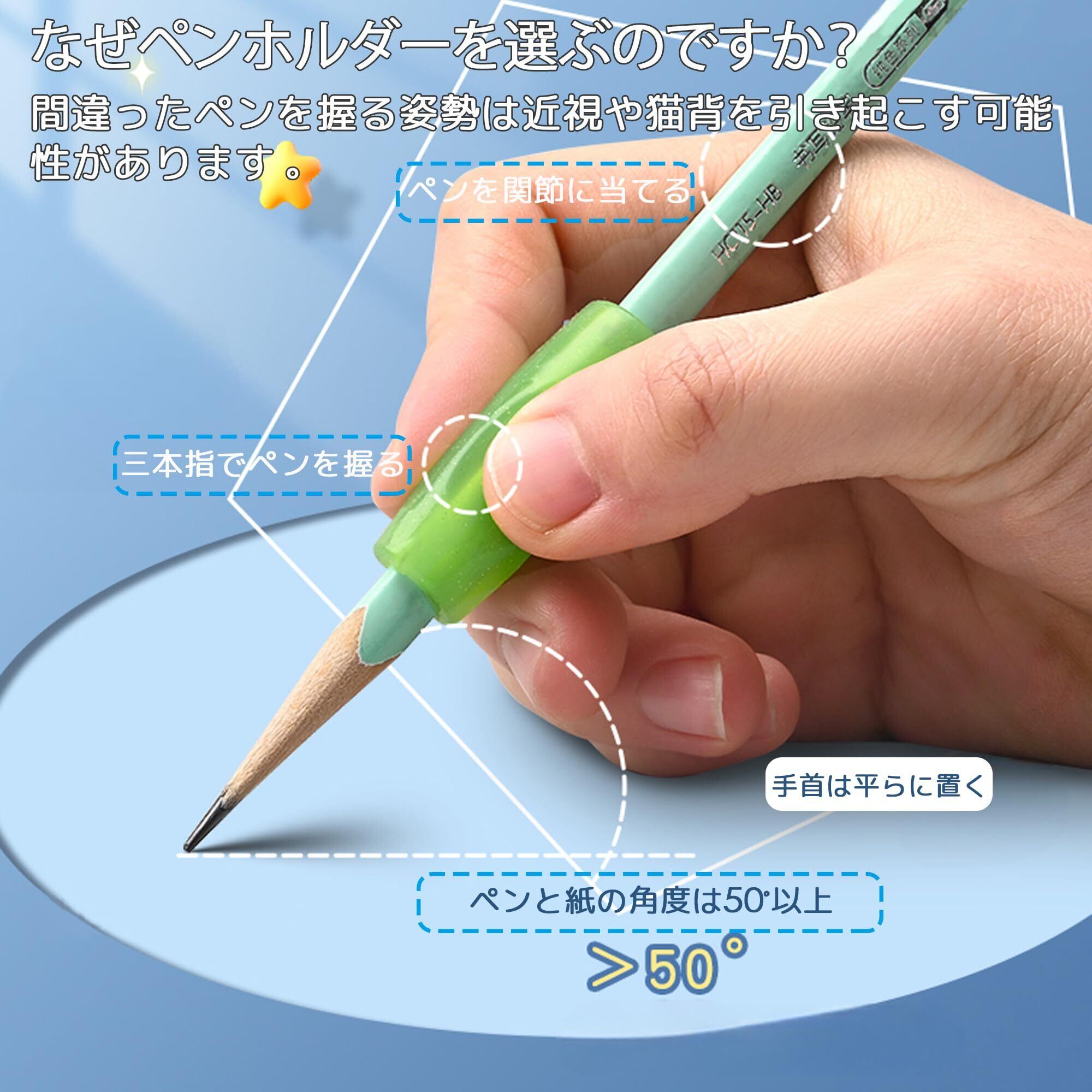 【多機能】鉛筆グリップを使うと、正しい姿勢と持ち方が身につき、手書きの能力も向上します。左利きと右利きの両方に対応しており、子供が正しい持ち方を学ぶのに非常に有用であるだけでなく、大人が書くときも非常に有用です。
