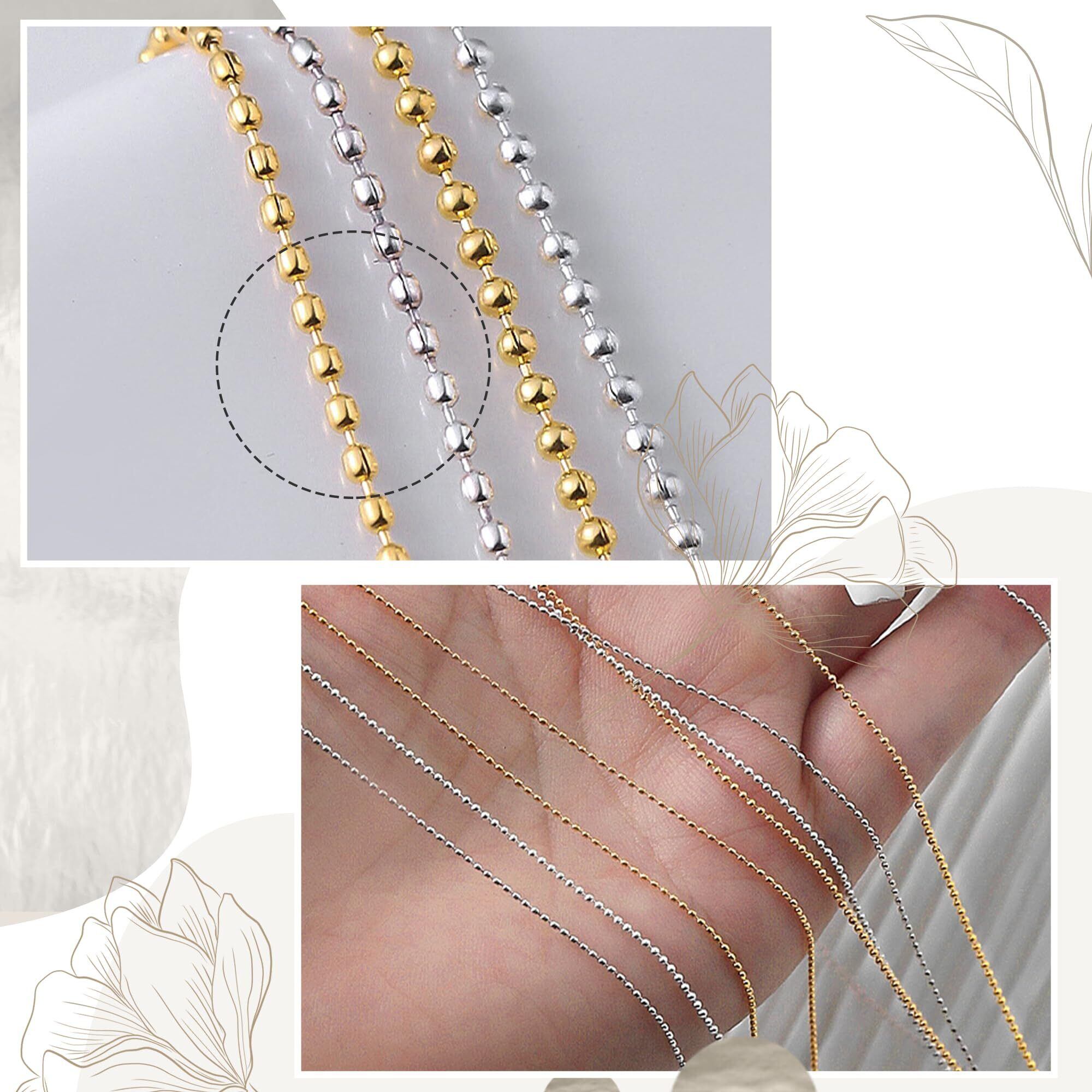 DELUXEFOX ネイル パーツ チェーン 50cm 2色入り 極細 0.8mm 裁断可能 ネイルデコレーションパーツ ネイルアート スタッズパーツ 工芸品 ネイルアート DIY アクセサリー 人気 おしゃれ(シルバー+ゴールド)