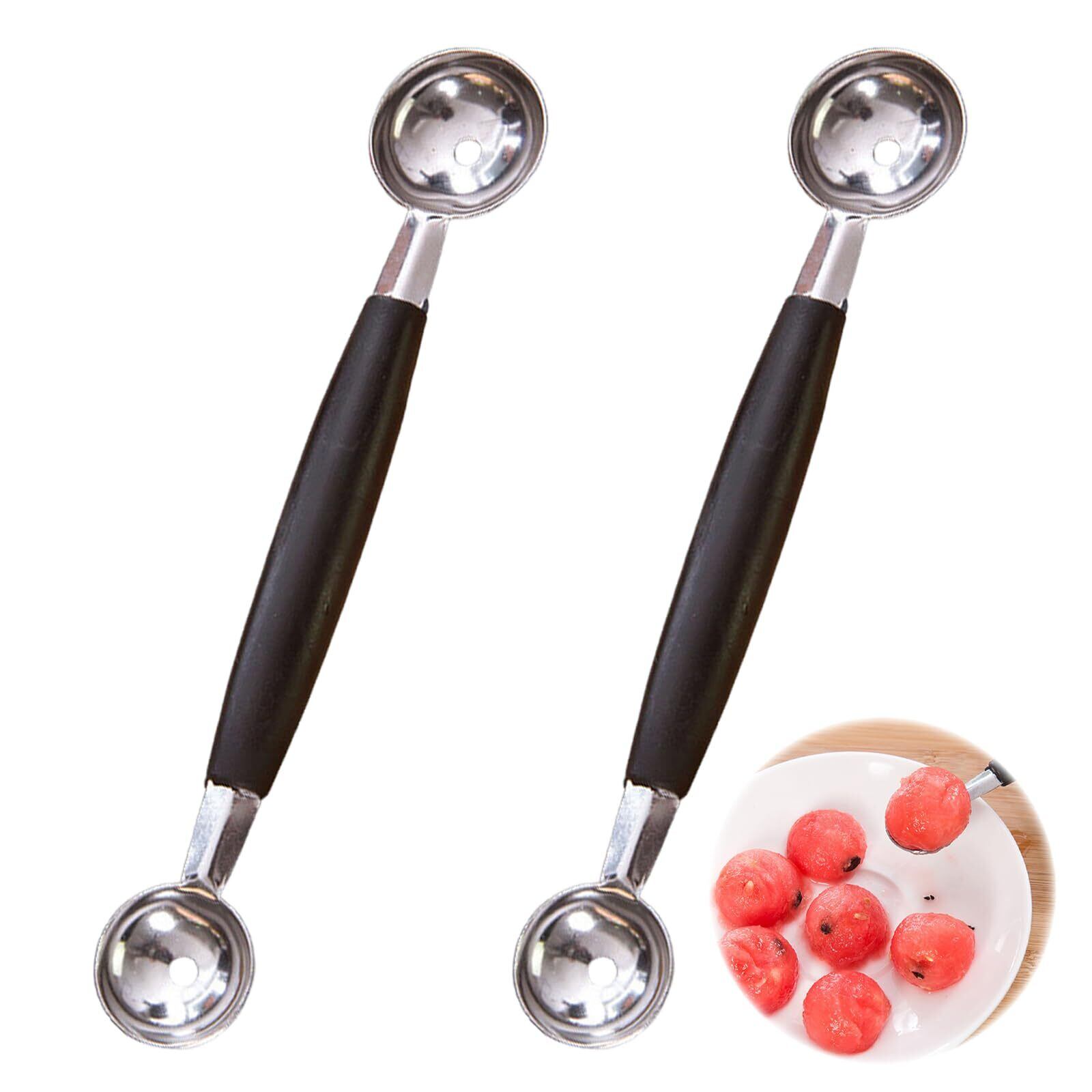 DELUXEFOX アイスクリームディッシャー メロンボーラースクープ 2個セット フルーツ用スプーン 彫刻ツール フルーツスクーパ ステンレス鋼製 両面デザイン 西瓜 果物抜き 製菓道具 多機能フルーツアイスクリーム レストラン調理 キッチン用品