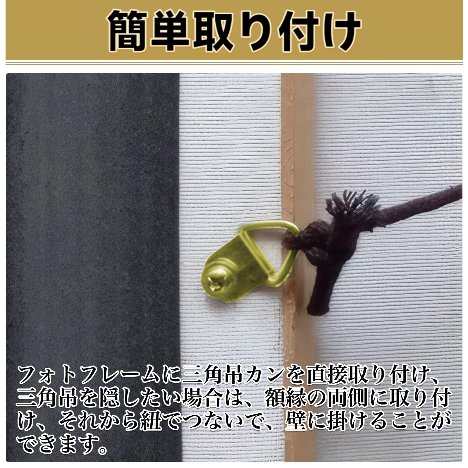 【簡単取り付け】付属の木ネジが装備されており、取り付けが簡単です。フォトフレームに三角吊カンを直接取り付け、壁に掛けることができます。