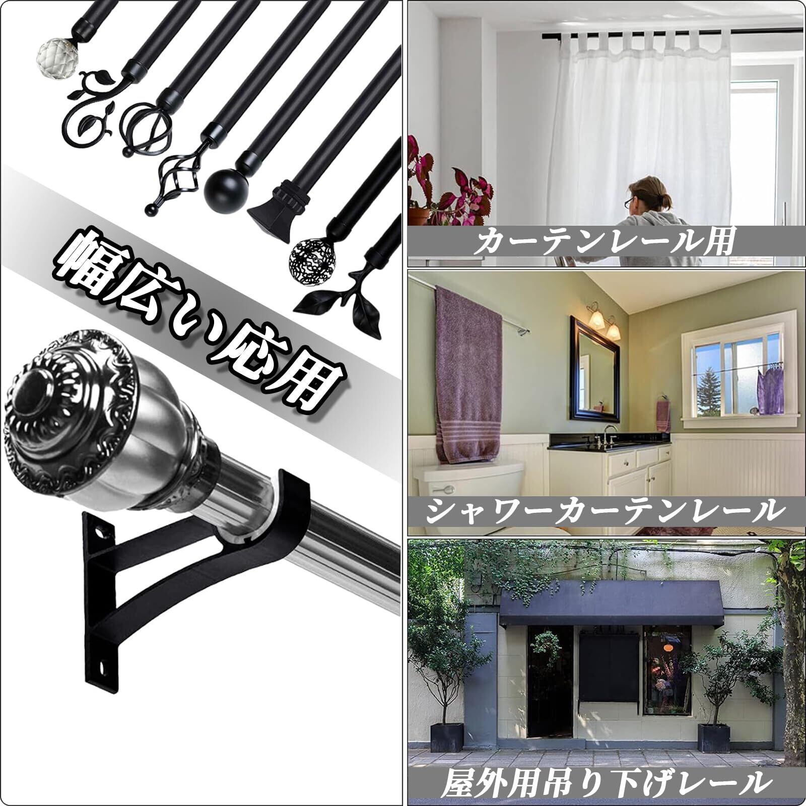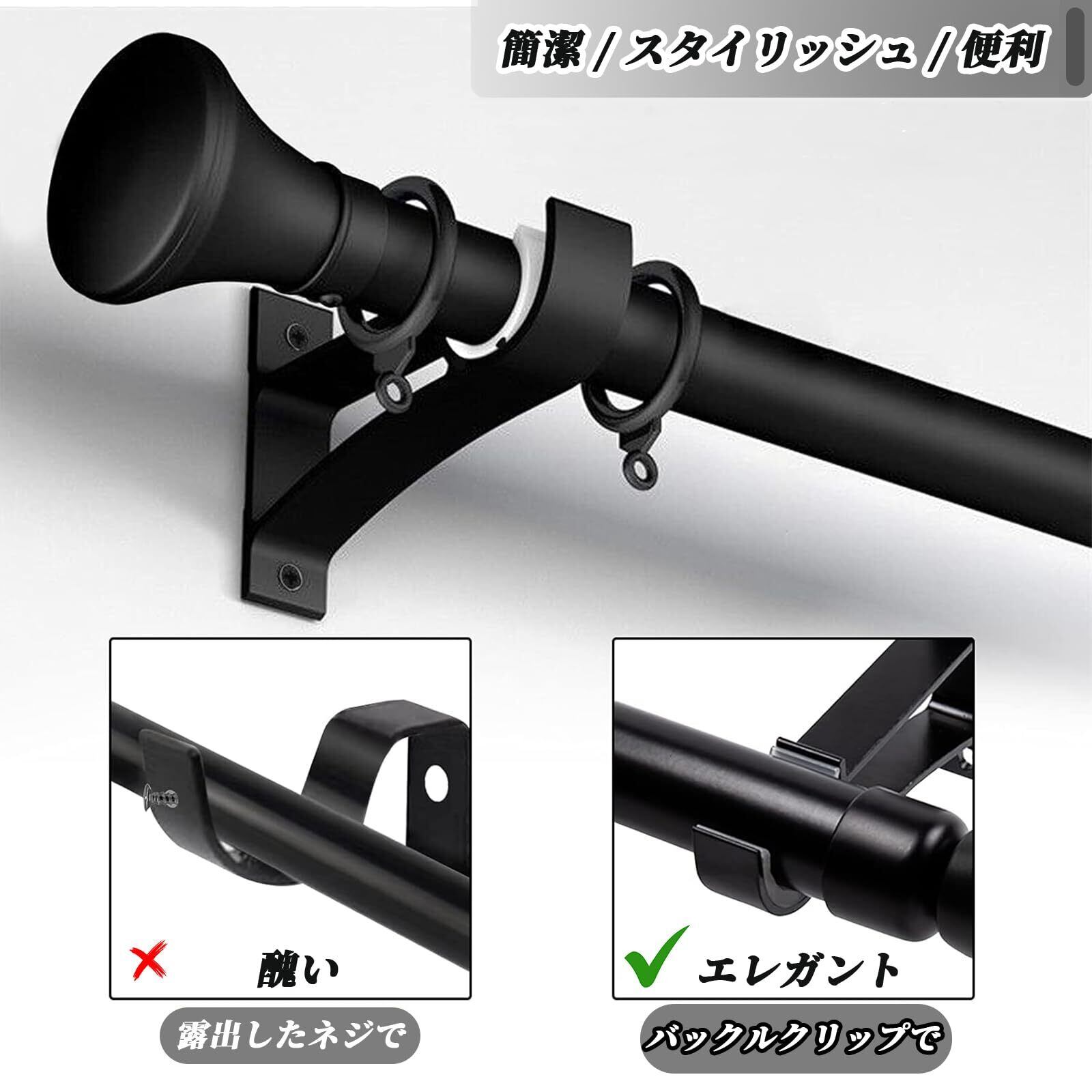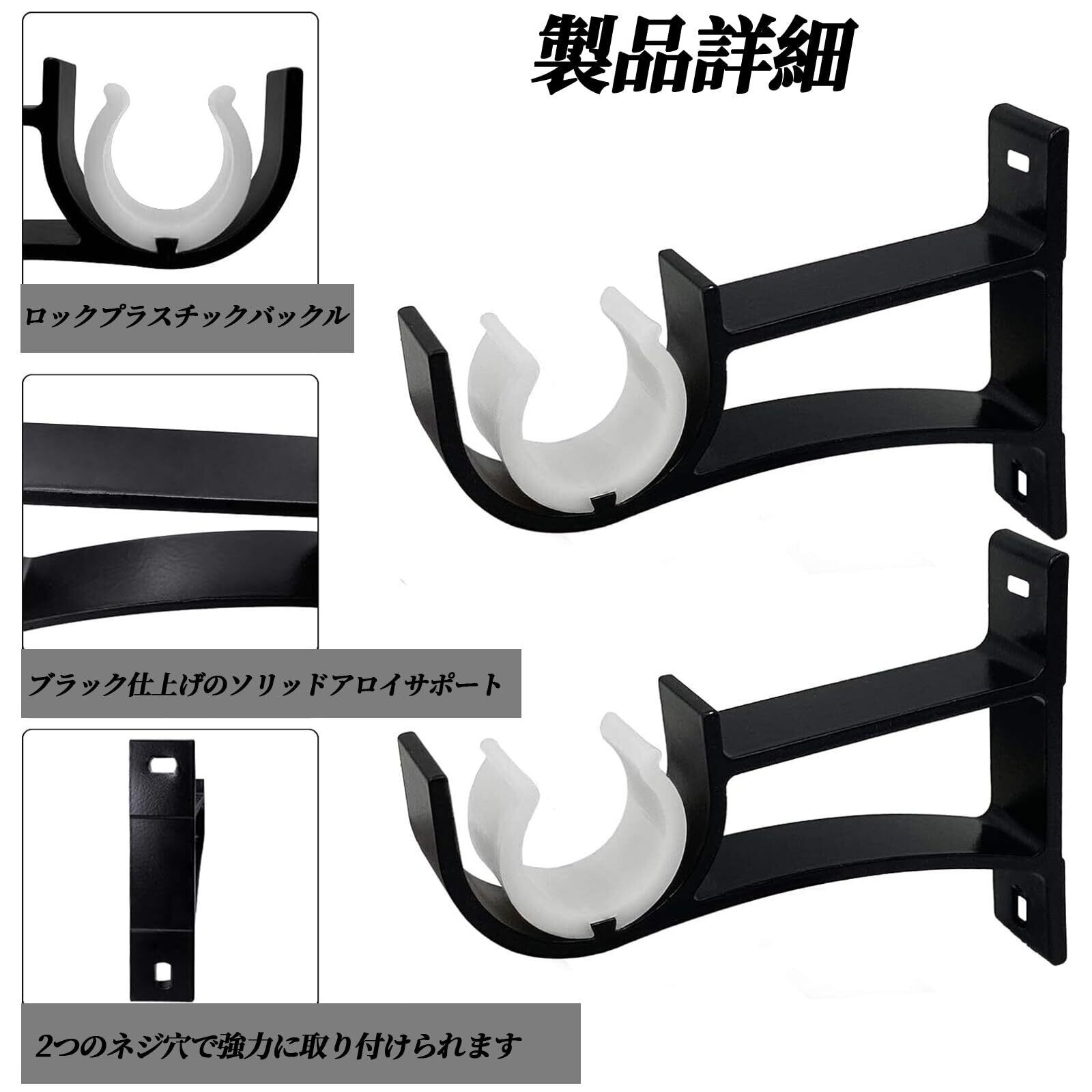 【製品サイズです】:サイズ: 約11×7.5×2cm/個、素材: アルミニウム合金、カラー: ブラック、重量: 約37g/個。カーテンロッドフックはアップグレードされた厚いアルミニウム合金で作られており、耐久性を確保しています。さまざまなカーテンロッドの重量に耐えることができ、耐久性のあるロッドを備えたさまざまなカーテンに使用できます。