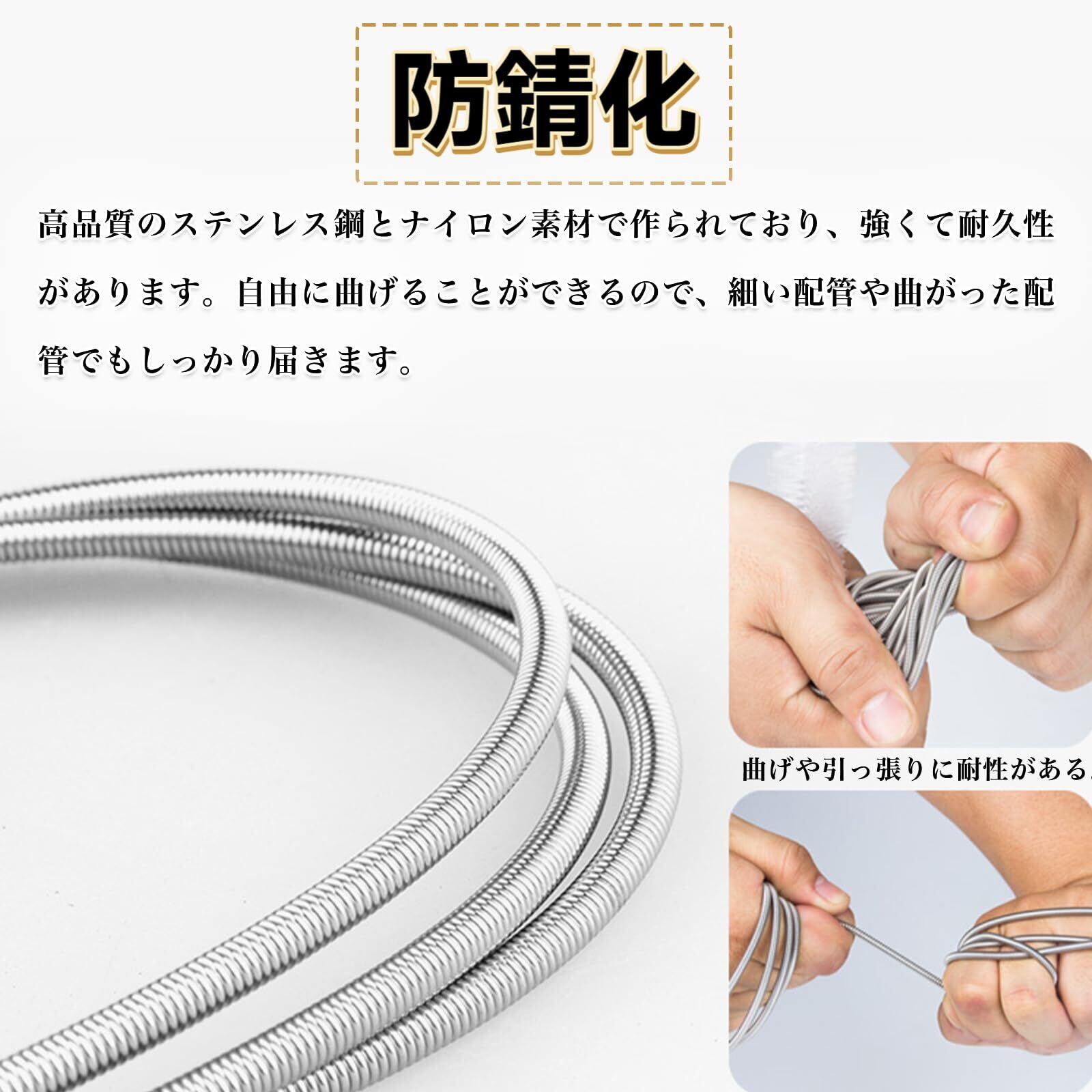 【高品質な素材】パイプブラシは、高品質のステンレス鋼とナイロン素材で作られており、強くて耐久性があります。自由に曲げることができるので、細い配管や曲がった配管でもしっかり届きます。