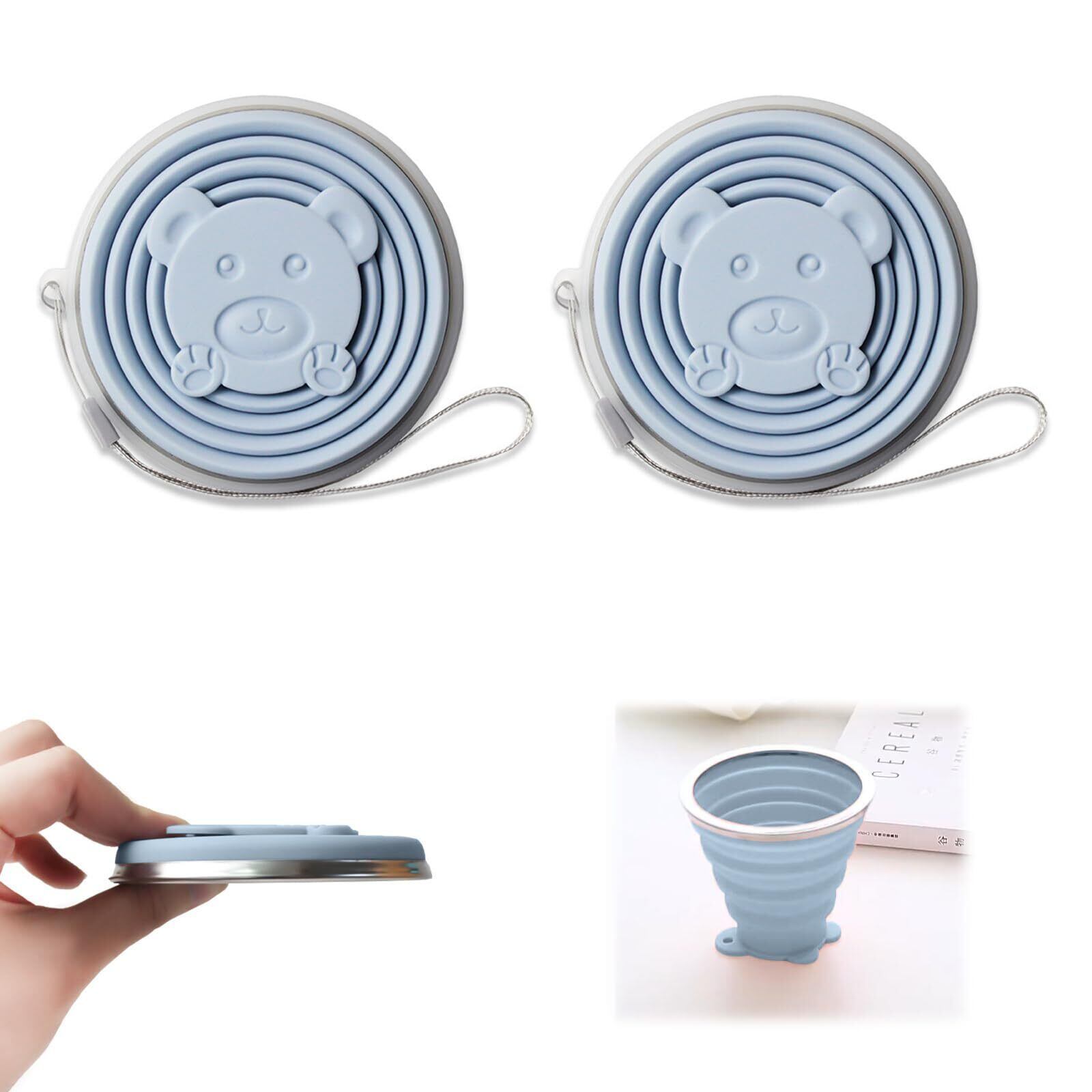 aninako 折り畳みコップ 折りたたみ式 シリコン カップ 軽量 蓋付き 耐熱 折りたたみ式コップ 携帯に便利 多機能 おしゃれ 通勤 アウトドア 旅行 キャンプ用 (ブルー+ブルー)