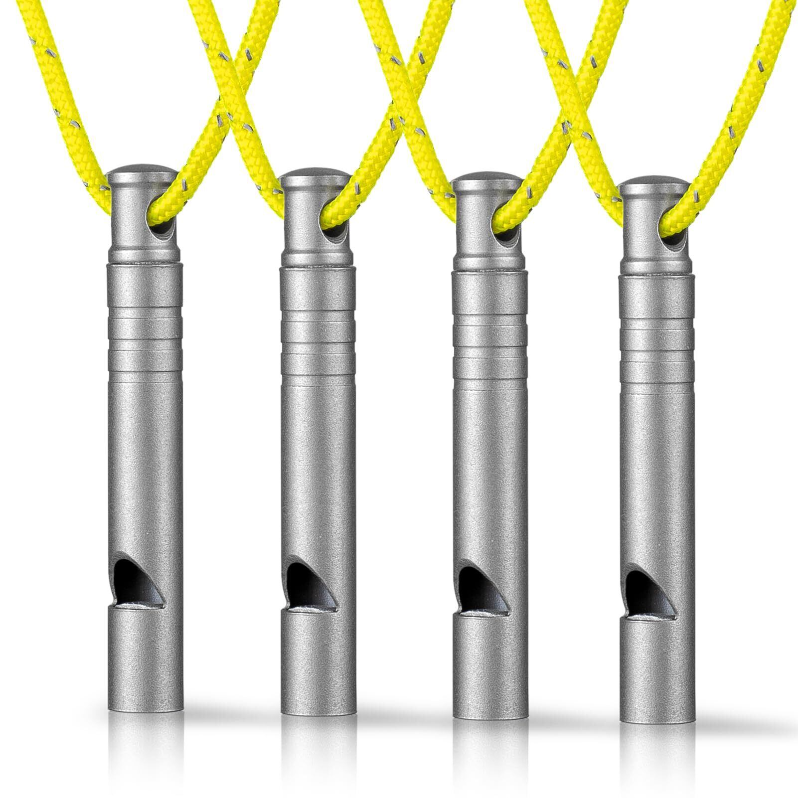 【特価処分】[TIMULTI] ホイッスル 笛 チタン製 緊急 危険防止 救急笛 防災用 アウトドア 登山 軽量 ネックレス付き (グレー*4個)