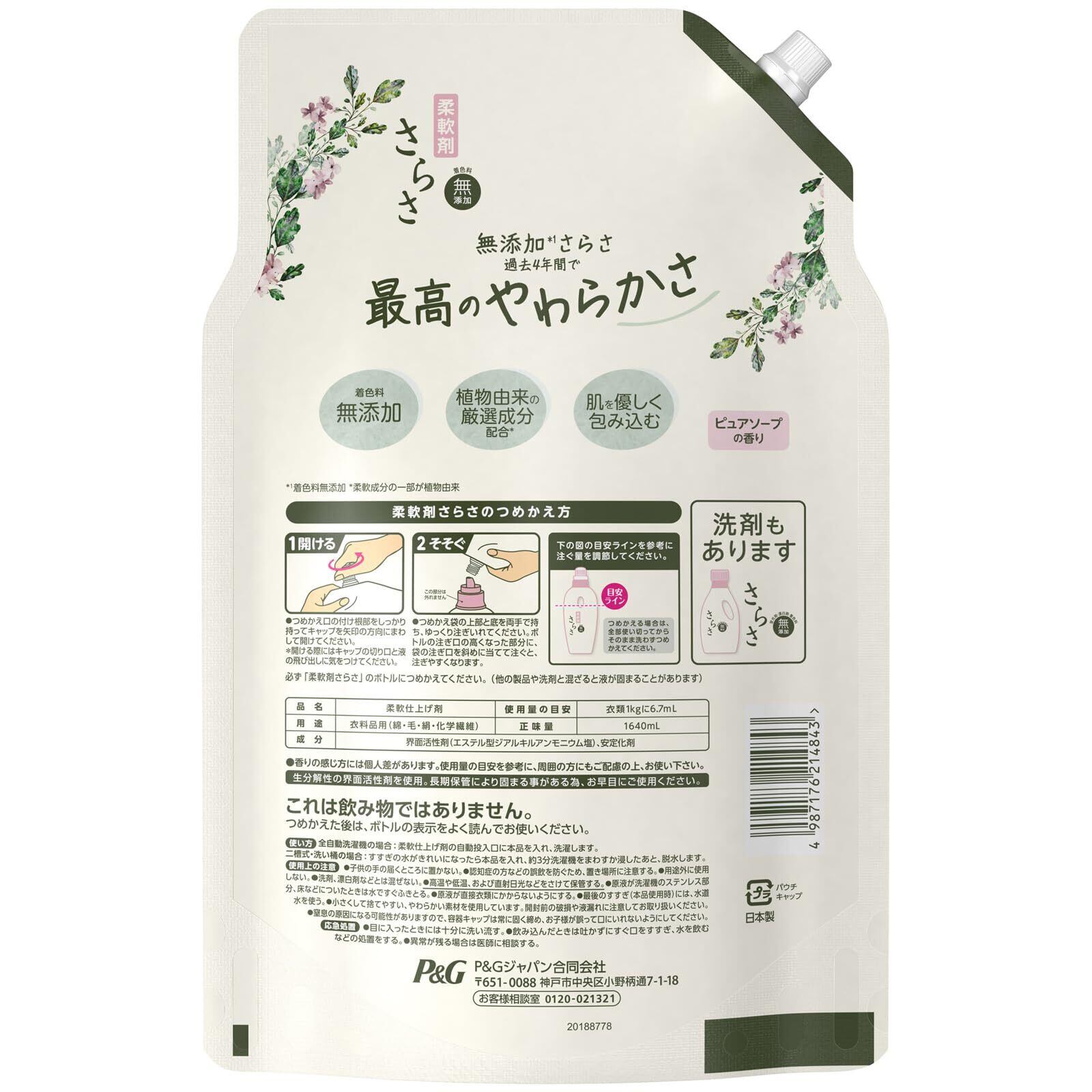 さらさ 柔軟剤 1640mL×2袋 無添加 ピュアソープの香り 植物由来の厳選成分配合 詰め替え 【まとめ買い】 [大容量]