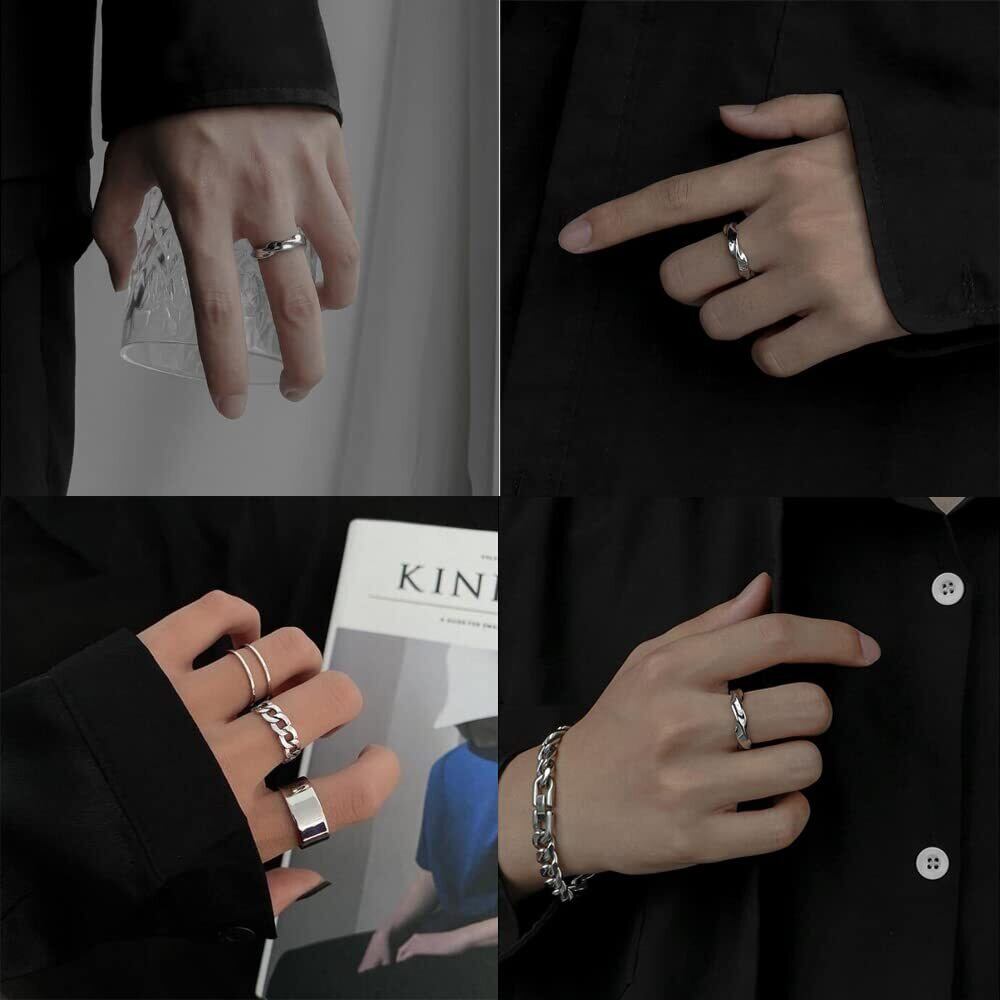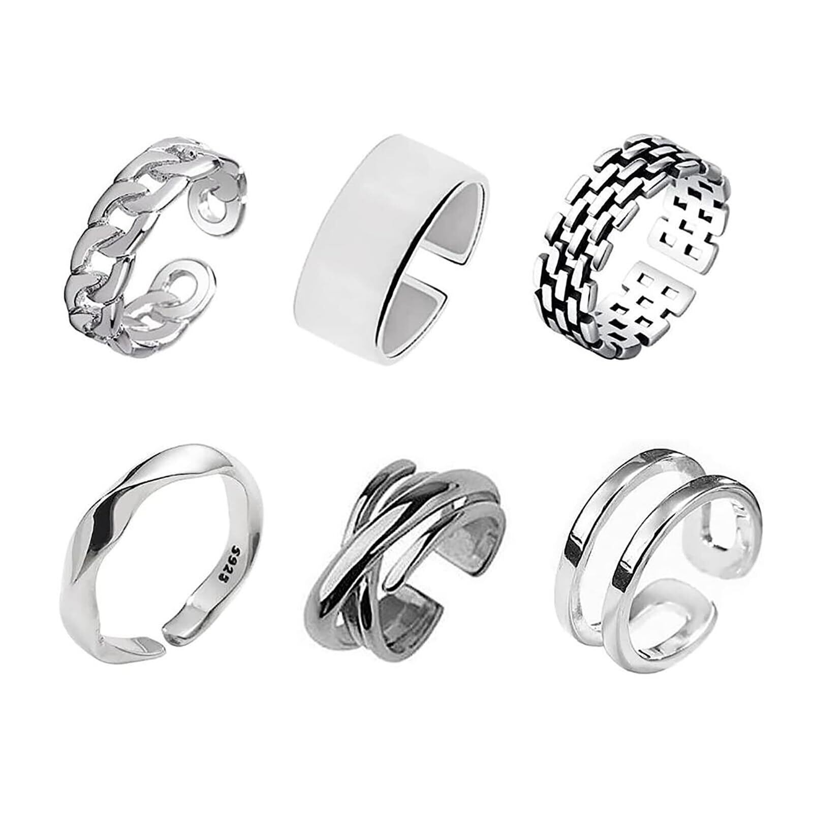 【人気】[] 指輪 6個入り リング アクセサリー ファッションリング メンズ レディース 人気 セット 調節可能 おしゃれ シンプル シルバー
