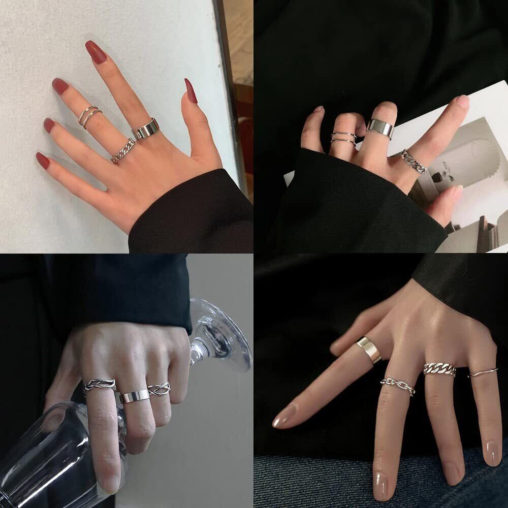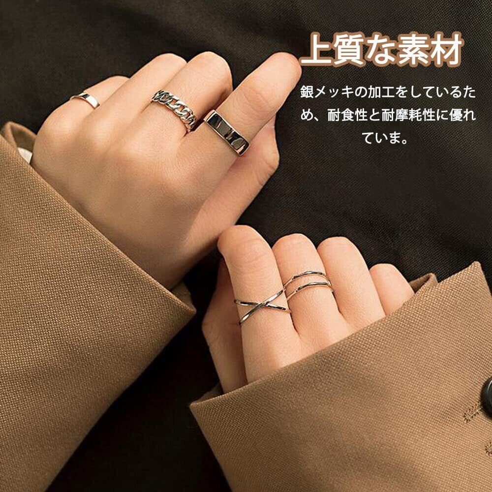 [] 指輪 6個入り リング アクセサリー ファッションリング メンズ レディース 人気 セット 調節可能 おしゃれ シンプル シルバー