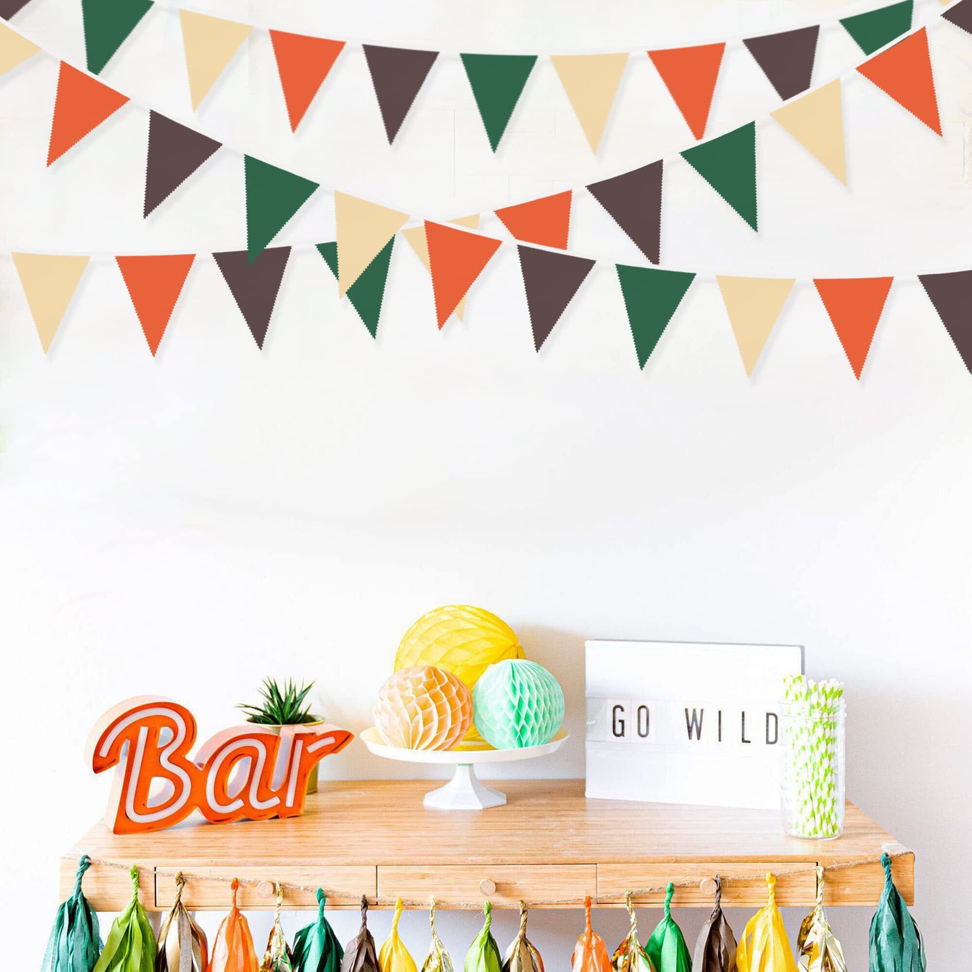 PinkBlume 緑のカーキのオレンジの茶色三角旗 布ガーランドバナーパーティー 飾り約10m長 フォレストグリーン アウトドア ペナント 旗 誕生日 飾り付け 結婚式ガーランド キャンプ 旗 三角 テント飾りバースデー デコレーション 子供部屋の装飾 お祭り 用品 水洗い可能