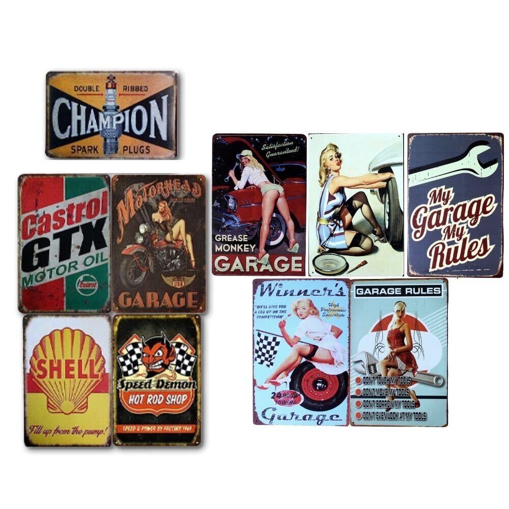 PLEAVIT ブリキ看板 アメリカン レトロ ガレージ 壁掛け プレート アンティーク 雑貨 インテリア (C)
