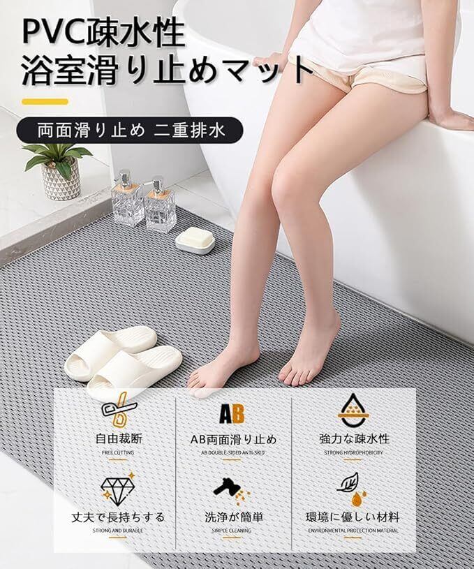 【滑り止め効果】浴室用マット は滑り止め性能の良いPVC製で、特殊な滑り止めテクスチャ設計により、滑り止め効果を高めます。