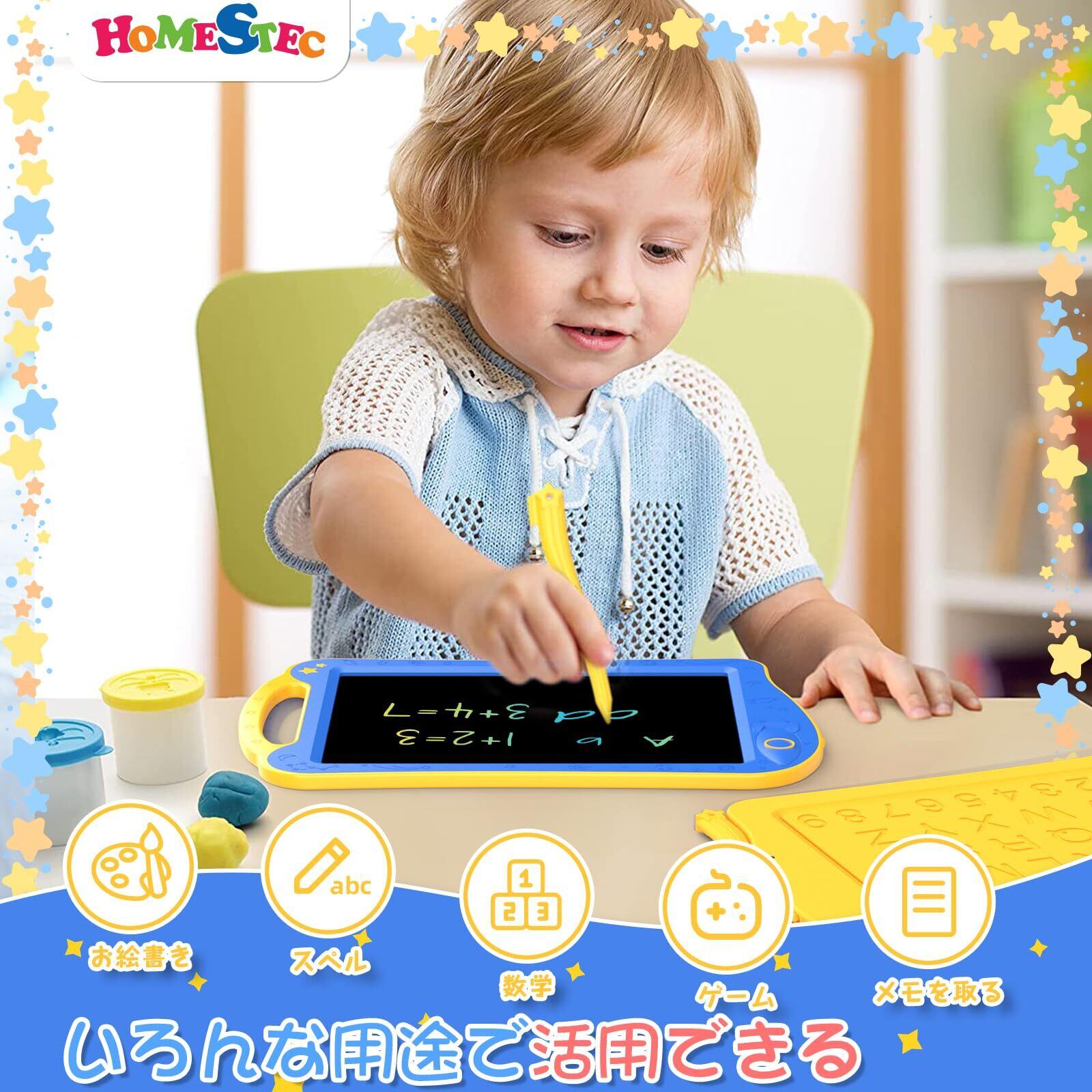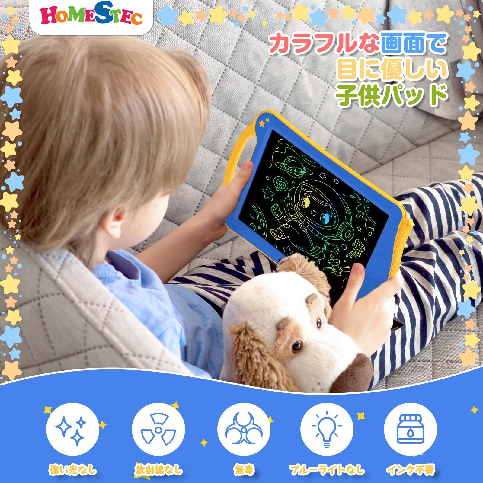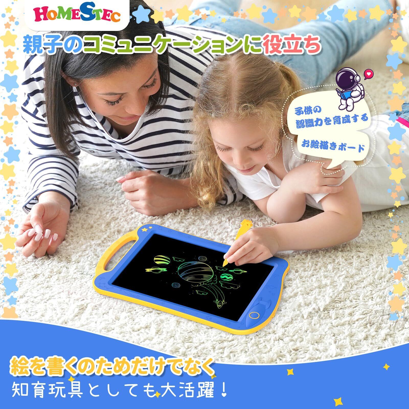 HOMESTEC AstroDraw お絵かきボード 高輝度 カラフルスクリーン 繰り返し書いて消せるボード 子供 おもちゃ 幼児教育 学習 落書き 知育玩具 女の子 男の子 7歳 誕生日 プレゼント ブルー/イエロー