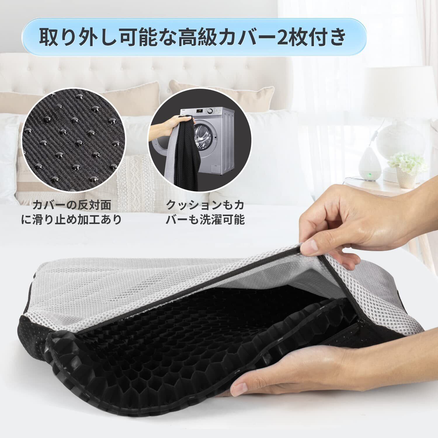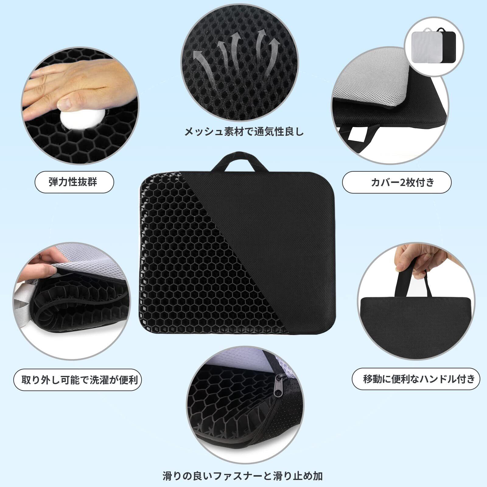 Yibaodan 特大 ゲルクッション 46*43cm カバー2枚 二重 クッション 腰楽クッション ゼロクッション ハニカム ハチの巣クッション グサイズ 座布団 椅子 車 オフィス 体圧分散 低反発 蒸れない 在宅勤務 テレワーク
