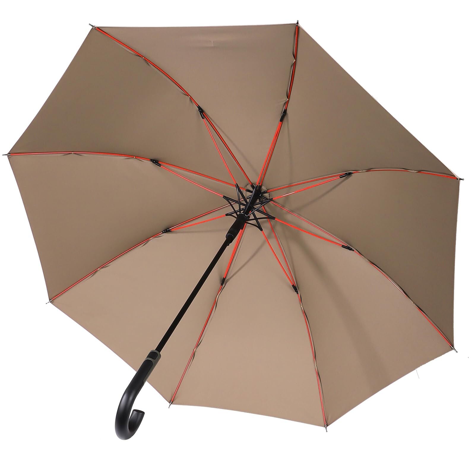 【多層防御・230T高密度NC布】:生地には230Tの高密度NC布でできており、耐水度は通常の傘の2倍以上です。超防水のため、軽く振ると水滴が落ちてくる。もちろん、防汚効果もあります。丈夫な中棒と大面積の傘布は大雨や台風に耐えることができ、傘布のひび割れを心配する必要はありません。また、強い日差しの下では遮光性99%があるため、雨の日だけでなく、暑い季節に通勤用の日よけの傘としても使用できます。