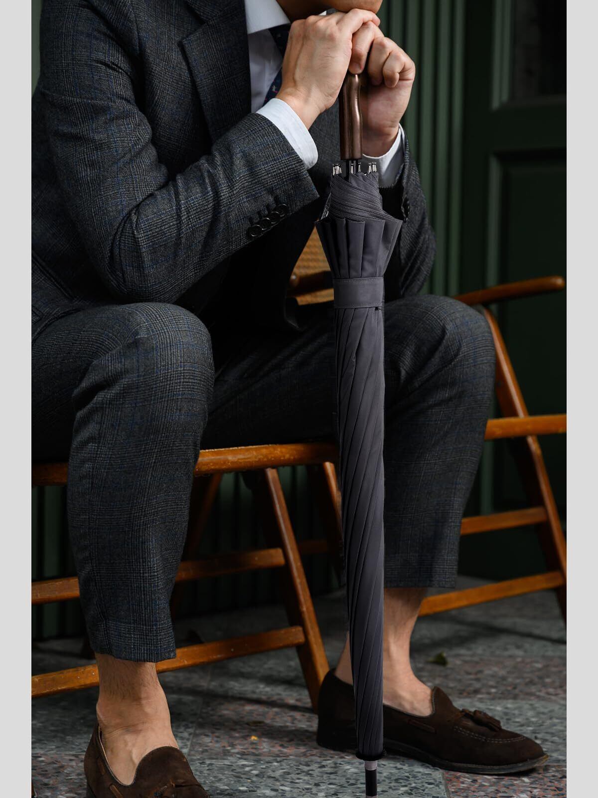 12本骨傘は骨数が多く幅広で耐風性に優れているのが特徴。多骨ならではの美しいシルエットも魅力で、閉じる際もスマートにまとめることができます。