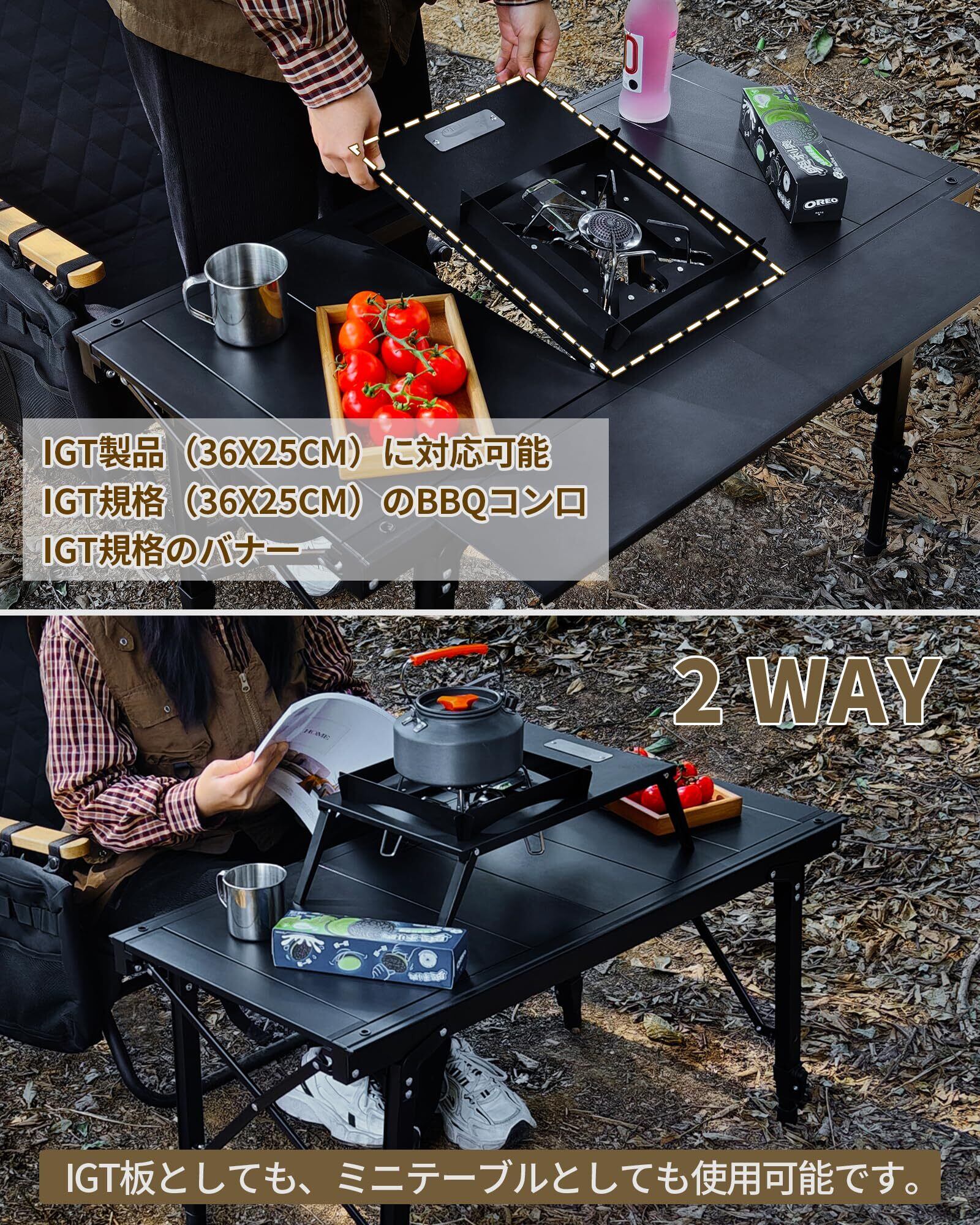 ?【IGT規格対応】脚を折りたたみ、Desert Fox IGTテーブルに組み込んで、美しいキッチンテーブルを作り上げます。燃焼器を除いた全ての表面が平らなので、テーブルのスペースをより効率的に活用できます。◆本店ではアウトドアチェア、テーブル、IGT天板、折りたたみベッド、焚き火台とテントを販売しています。様々なタイプのIGTテーブルを組み合わせて、当店でお選びいただけます。