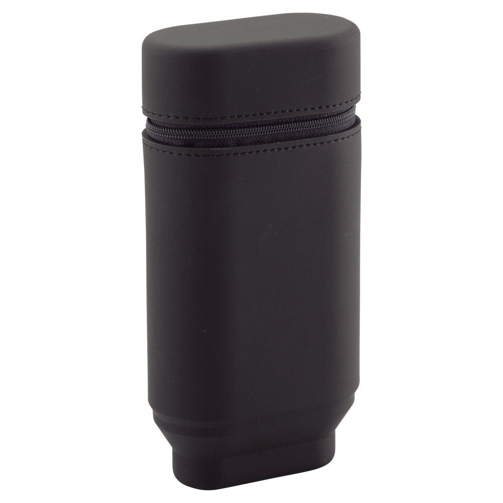 リヒトラブ スタンド ペンケース オーバルタイプ L ブラック A7695-24 【収容本数】約22本 【蓋裏部】消しゴムホルダー付 【機能】ペンケースにもペンスタンドにもなる 【素材】シリコンゴム 【寸法】89mm×49mm×192mm やわらかく手触りのよいシリコン製の立つペンケース。 上から押すだけでスタンドペンケースに早がわり。楕円形なのでバックの中でもスッキリ納まります。 フタ部分には消しゴムホルダー付き。