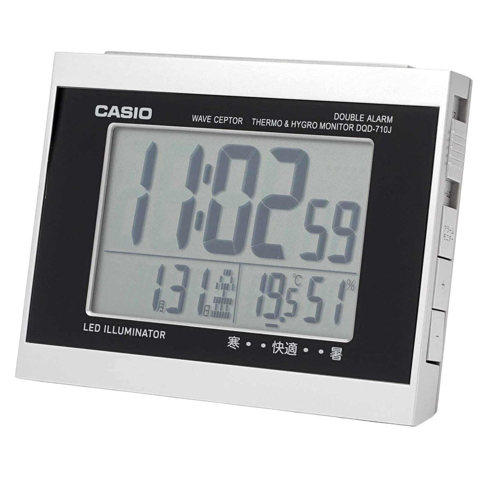 CASIO(カシオ) 目覚まし時計 電波 デジタル ダブルアラーム 温度 湿度 カレンダー 表示 シルバー DQD-710J-8JF9.1×11.7×6.8cm