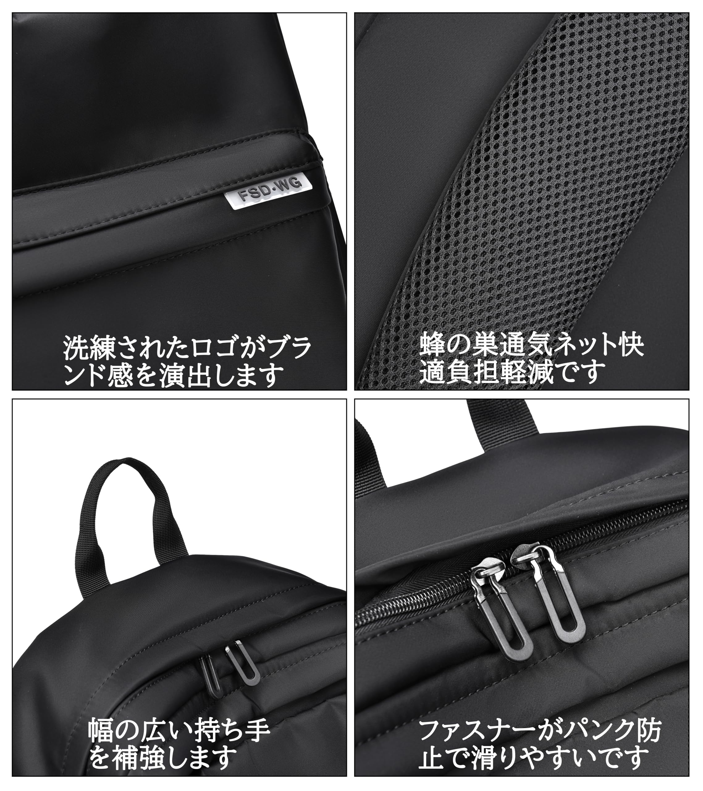 【細部に拘るデザイン】ファスナーを採用し、しっかりとした縫製を加え、品質にこだわった製品に仕上げました。使用時の破損防止のために、圧力を受けた部品は強化されています。シンプルでありながら高級感のあるリュックサックです。