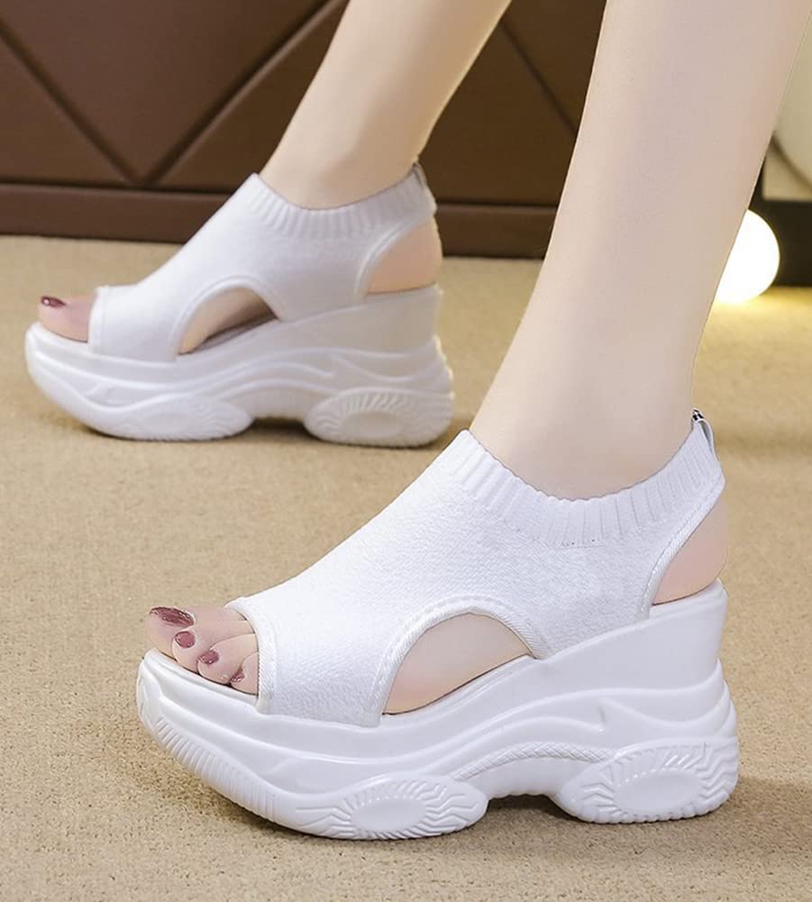 [MaxWant] サンダル 厚底 9cm身長アップ レディース メッシュ 軽量 夏 歩きやすい 通気性 美脚 ファッション カジュアル 【厚底でスタイルアップ】約9cmヒールで足長効果UP !足元に程よいボリューム感を演出できる厚底ニットスポーツサンダルが登場しました。 【フィット感に優れたストレッチニット素材】ストレッチが効いてるので足によくなじみます。夏らしい爽やかなメッシュ状で通気性も抜群です。