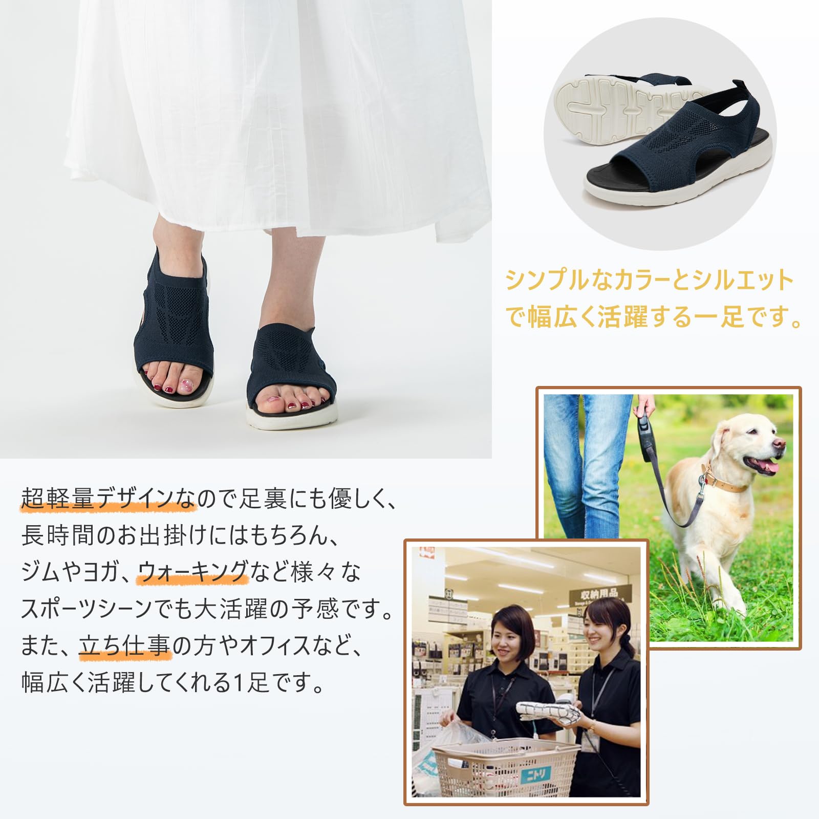 [MERPHINE] スポーツサンダル レディース ニット メッシュ 厚底 オフィス サンダル 夏 通気 軽量ウォーキング 歩きやすいおしゃれ オシャレ