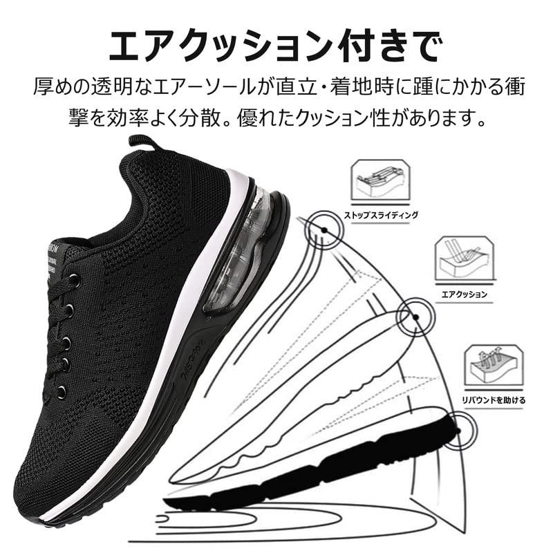【通気性】 通気性が抜群で、一日中爽やかで快適です。アッパーは通気メッシュを採用し、靴内は蒸れにくいなります、足の健康にもサポートします。