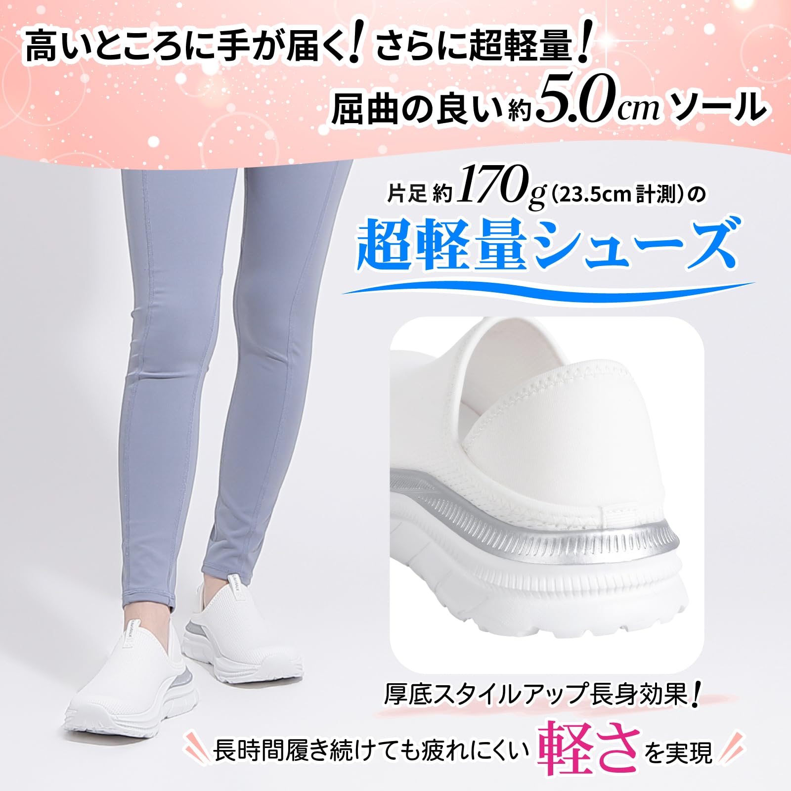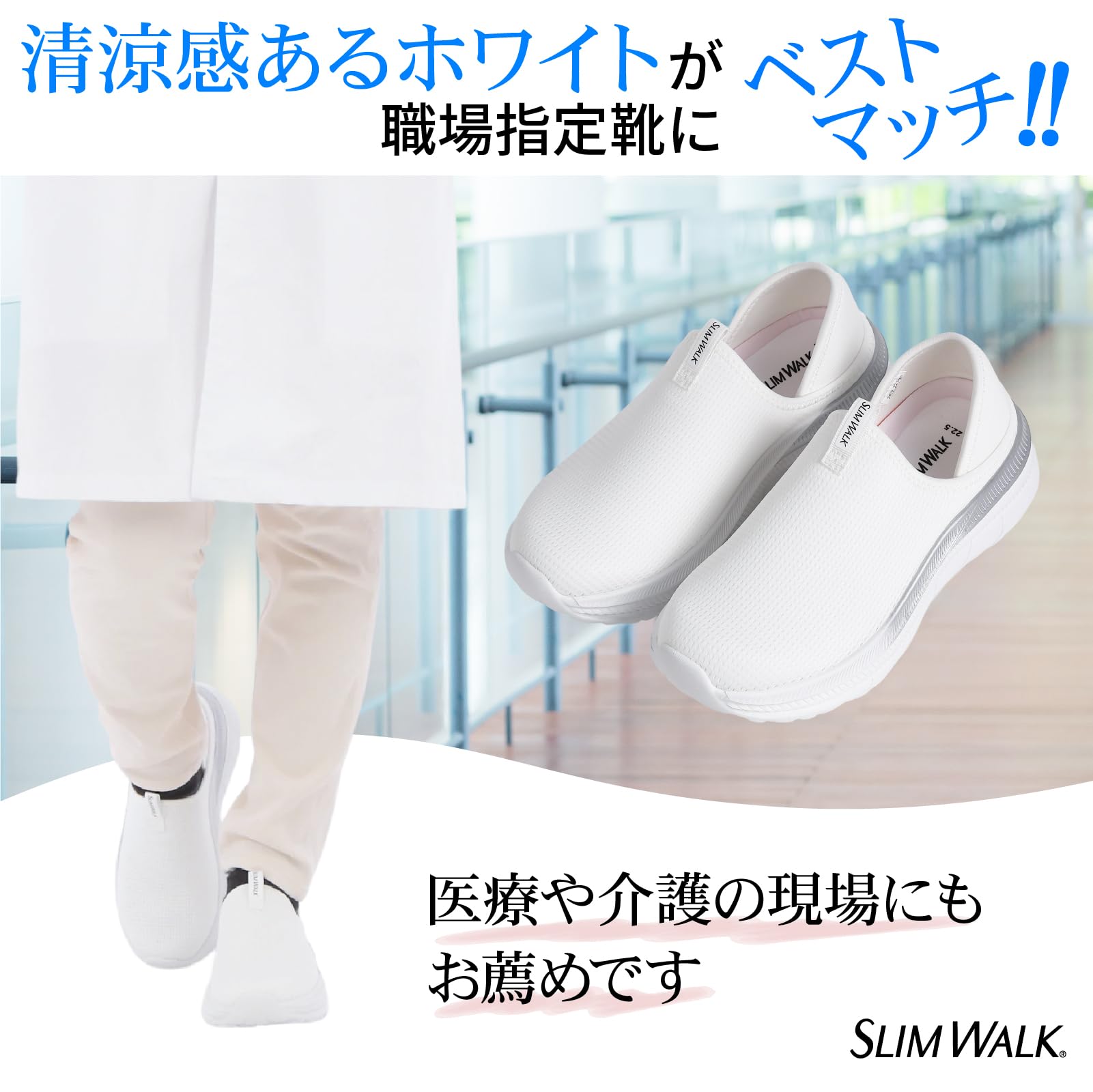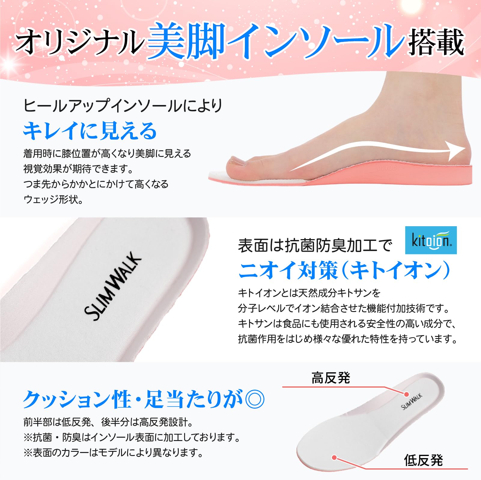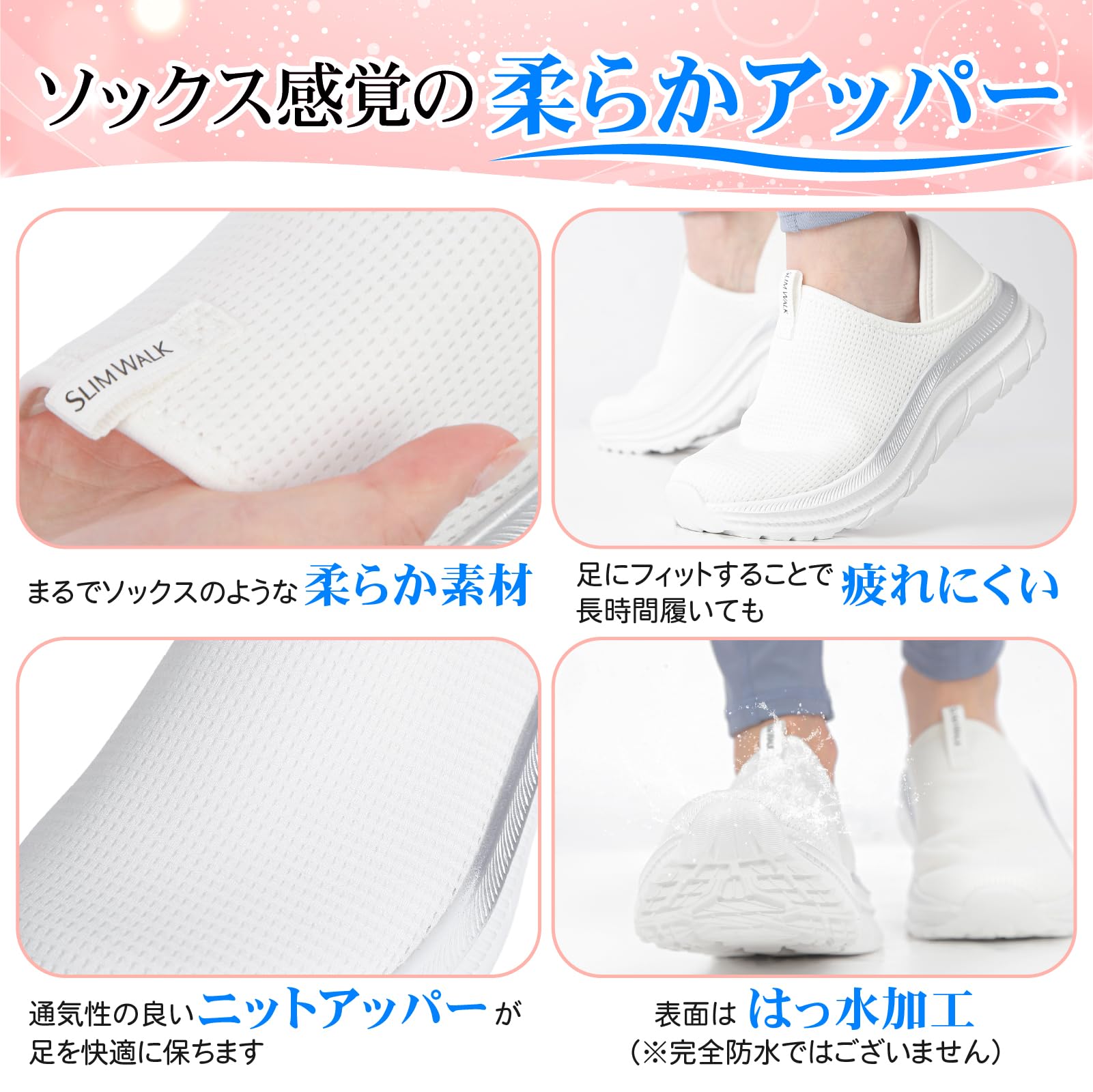 [スリムウォーク] ナースシューズ かかとが踏める 2Way 幅広4E 抗菌防臭 撥水 超軽量 看護 介護 通気性 厚底スニーカー 22.5 23.0 23.5 24.0 24.5 【オリジナル美脚インソール搭載】 ヒールアップインソールによりスッキリ見え、着用時に膝位置が高くなり美脚に見える視覚効果が期待できます つま先からかかとにかけて高くなるウェッジ形状です