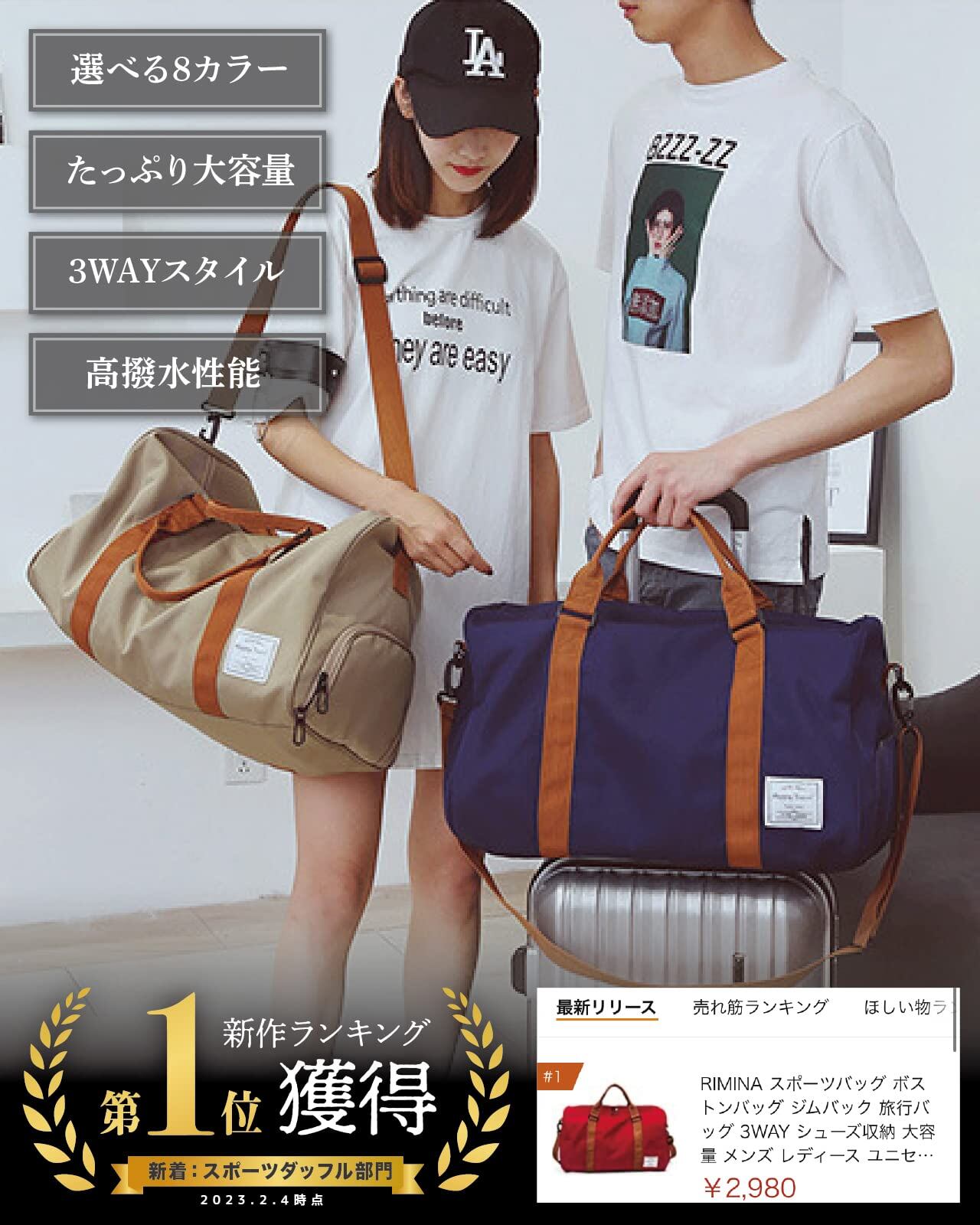 【特価処分】RIMINA ボストンバッグ 【雑誌掲載!ポケット改良】 旅行バッグ ジムバック スポーツバッグ 3WAY シューズ収納 大容量 メンズ レディース ユニセックス 乾湿分離 アウトドア 機内持込 カーキ