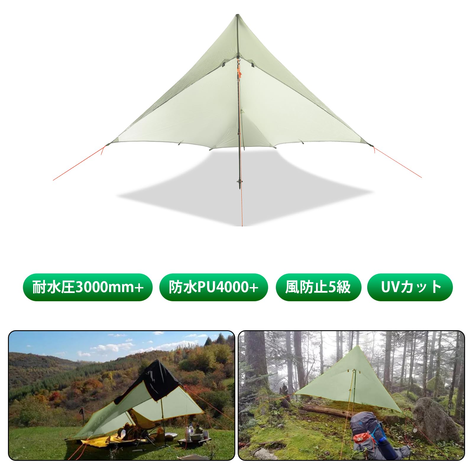 【在庫処分】ポールテント 登山用 テント 両面シリコーン 引き裂き 超軽量 防水 防風 設営簡単 キャンピング プロフェッショナルテント