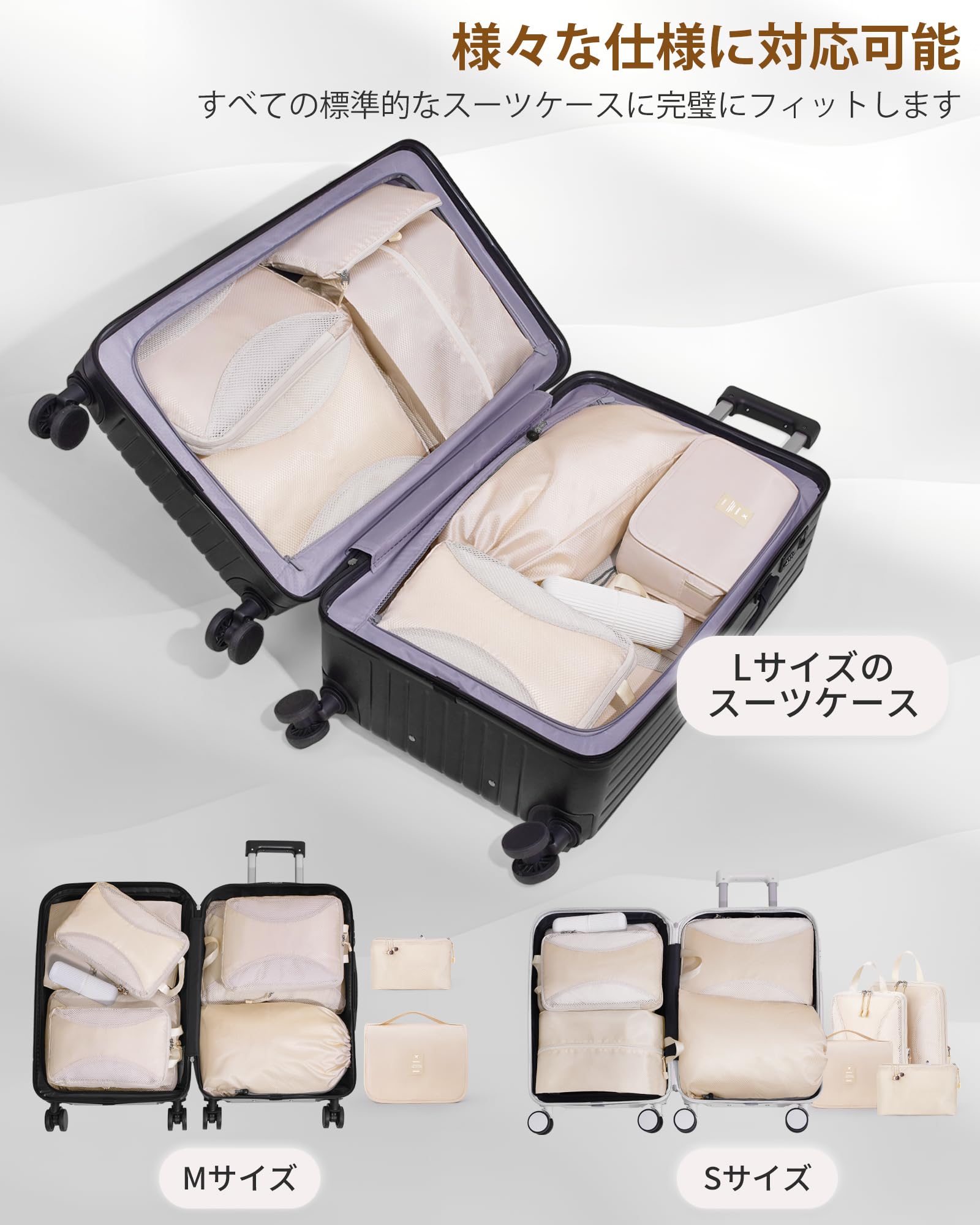 トラベルポーチ 圧縮 10点セット 旅行用ポーチ 旅行用圧縮袋 2024最新型 スペース節約 スーツケース 衣類仕分け収納 防水 軽量 丈夫なファスナー圧縮 パッキングポーチ シューズバッグ付き 出張 旅行 便利グッズ ベージュ