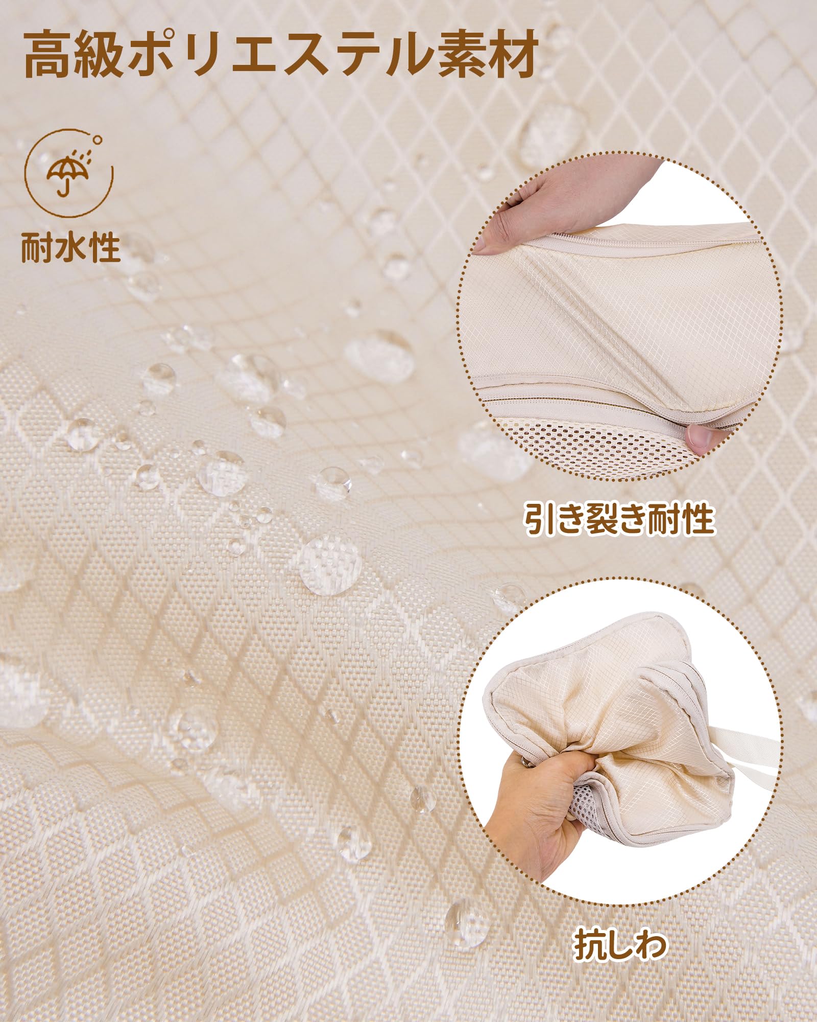 耐摩耗性がある・触り心地が良い:トラベルバッグは良質な厚みのあるポリエステル素材を採用、防水、防塵、軽量の特徴を持ち、携帯に便利です。メッシュデザインで通気性が良く、見やすさも兼ね備えているため、整理が楽になります。緊急時にスーツケースの中を探し回る面倒から解放