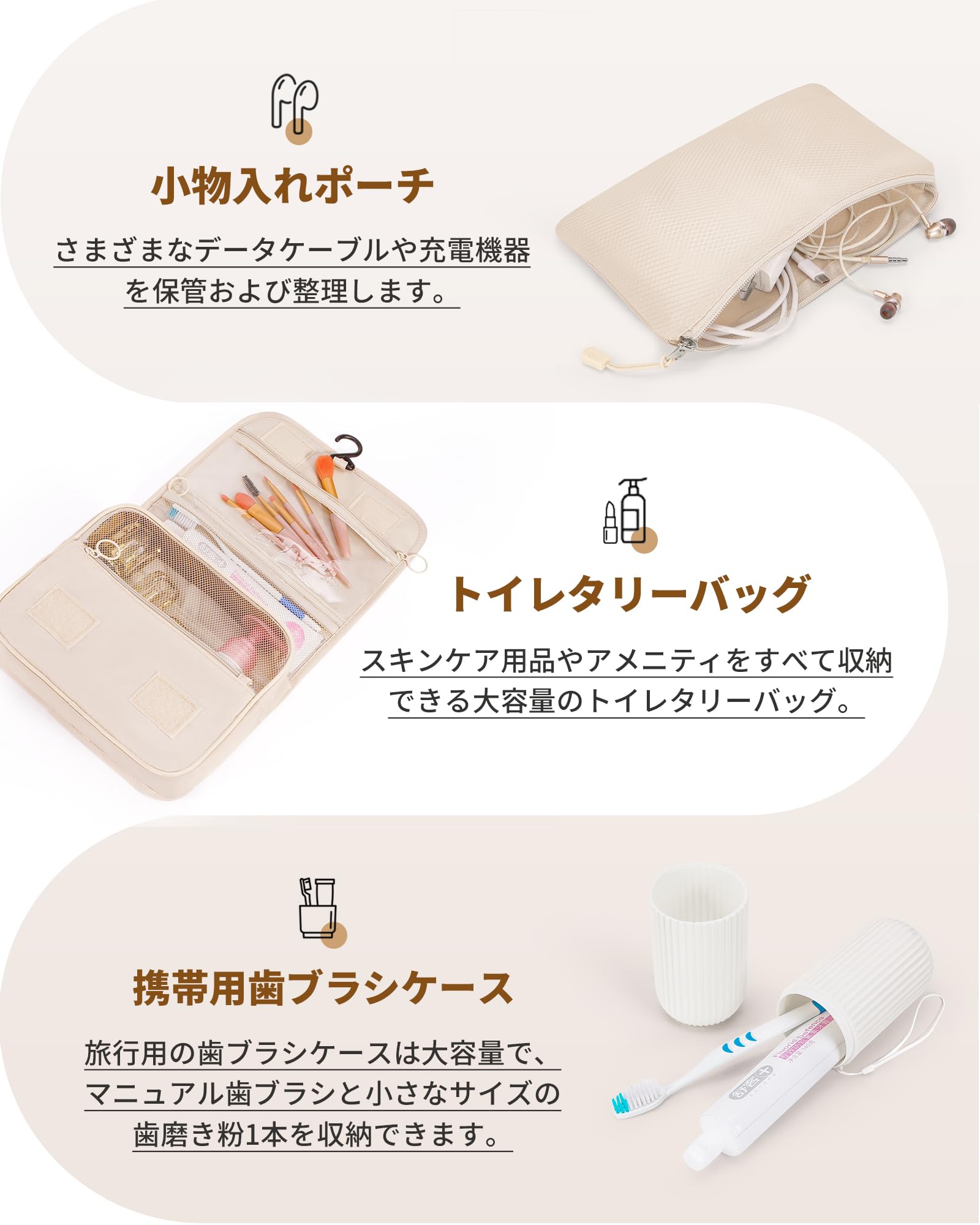 セット内容:便利な10点セット:圧縮バッグ×5、シューズバッグ×1、吊り下げトイレタリーバッグ×1、防水洗濯物入れ袋×1、小物入れポーチ×1、携帯用歯ブラシケース×1。この1セットで十分!物を納めるだけではなく、靴、洗面用具、雑物とよく使う小物、汚い服ときれいな服などを区別して収納できます